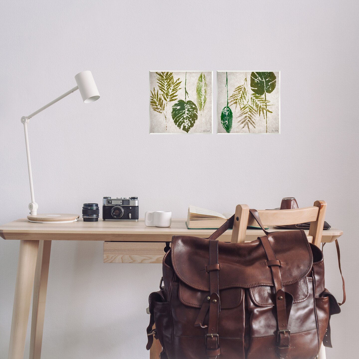 Stupell Industries Monstera Stamped Palm Leaves 2 pc Wall Plaque Art Set Design by Lanie Loreth