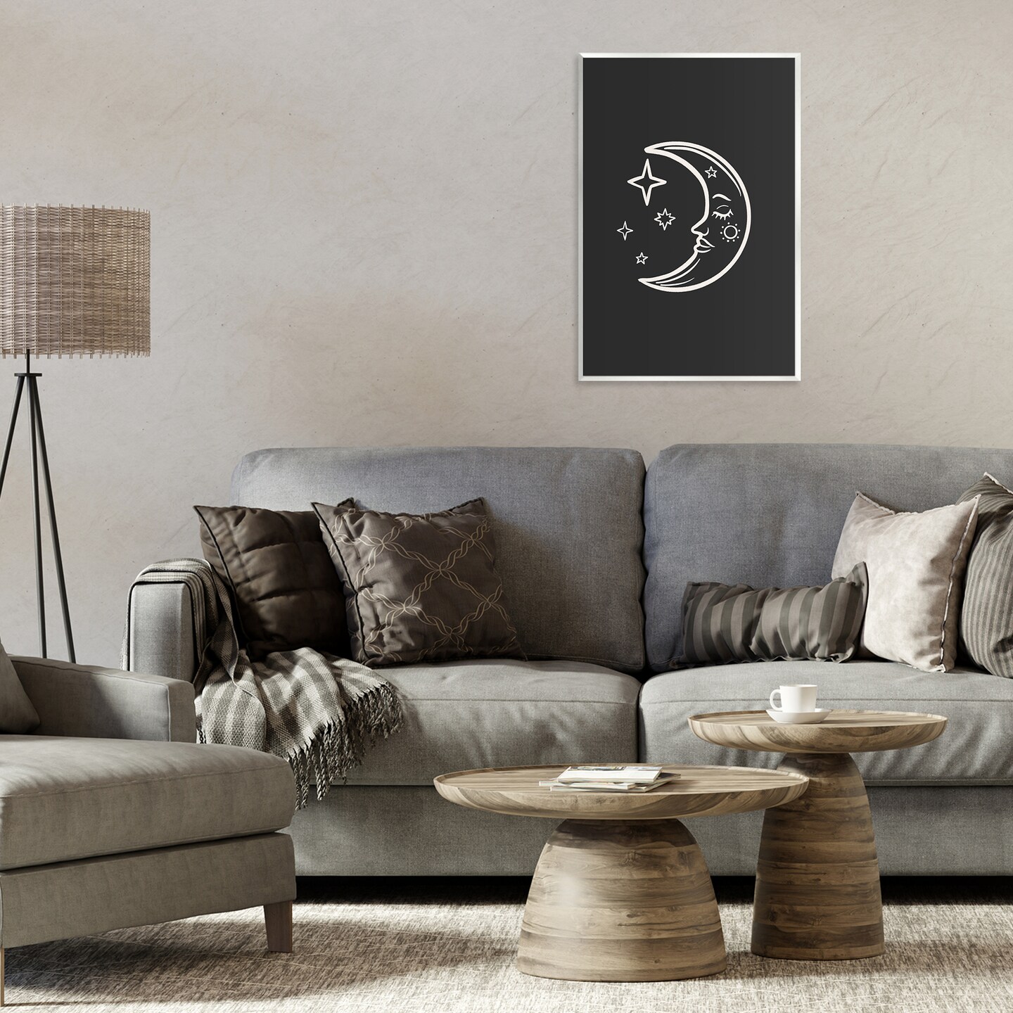 Stupell Industries Moon & Stars on Black Wall Plaque Art Design by JJ Design House LLC