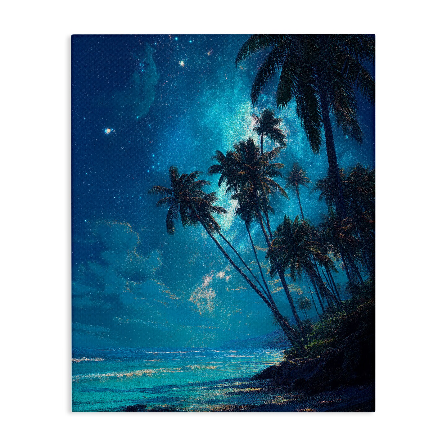 Stupell Industries Moonlit Beach Palm Trees Canvas, design by Ziwei Li
