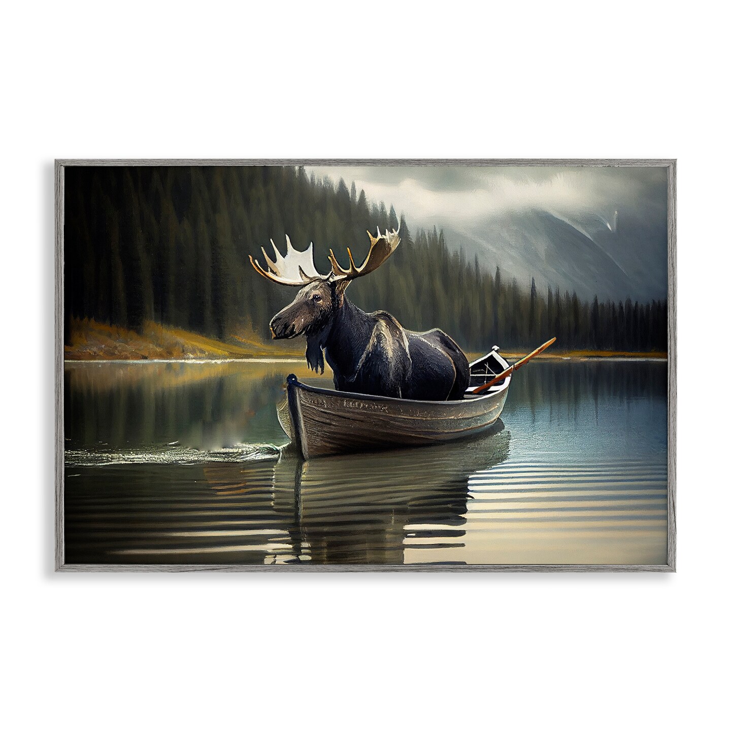 Stupell Industries Moose in Canoe Tranquility Framed Giclee, design by Sasha