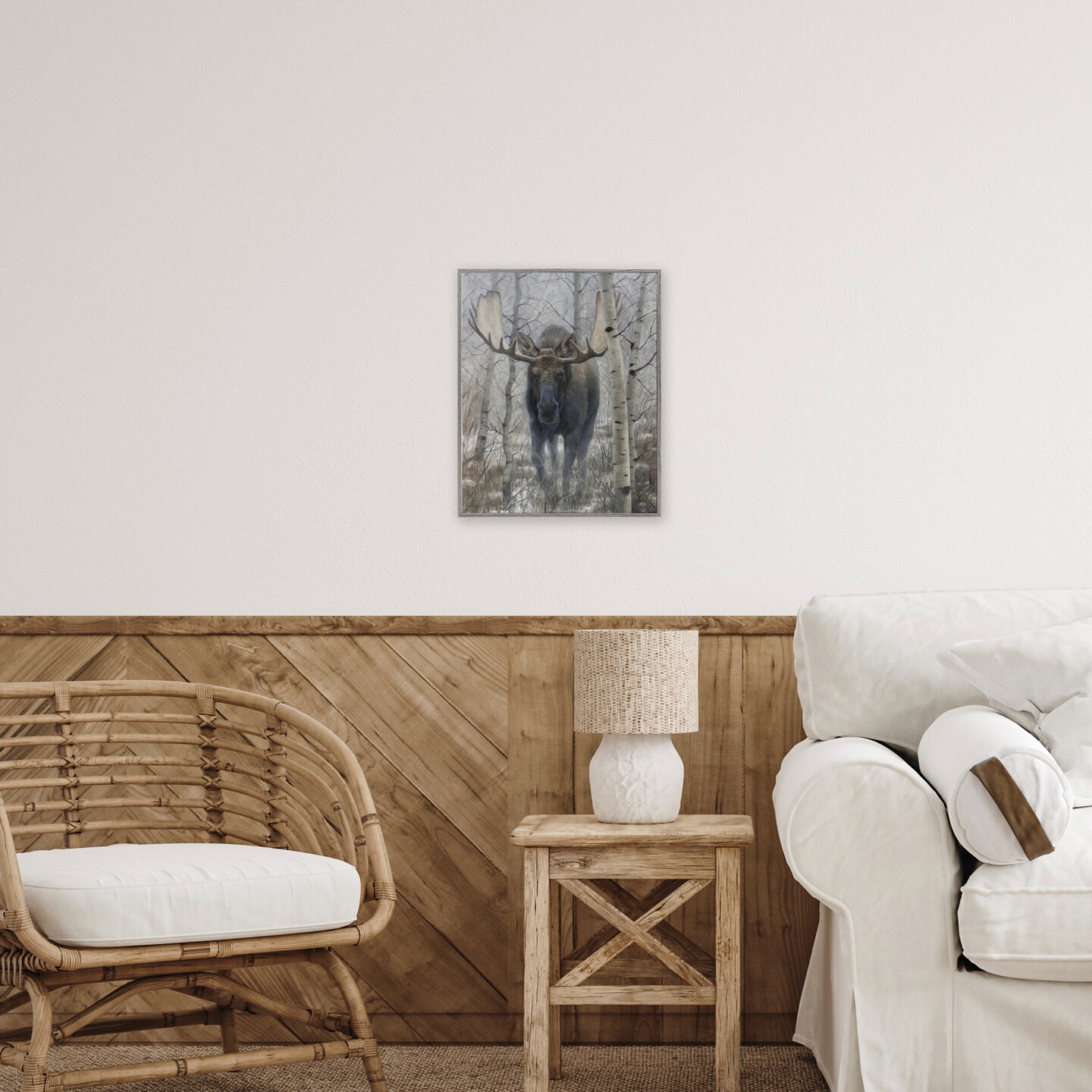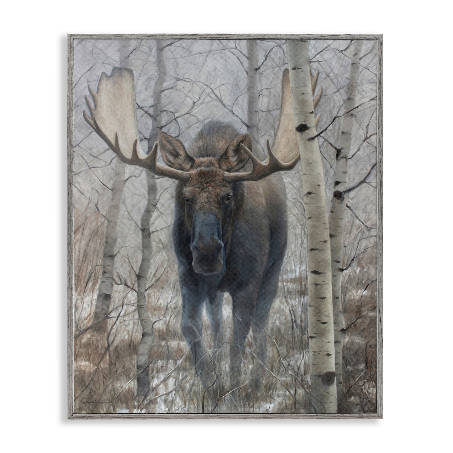 Stupell Industries Moose in Winter Birch Forest Framed Giclee, design by James Corwin