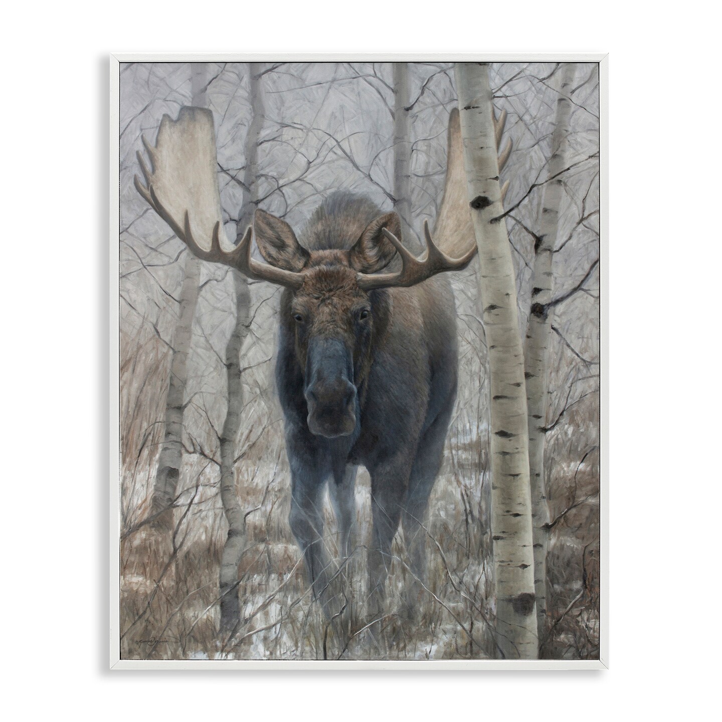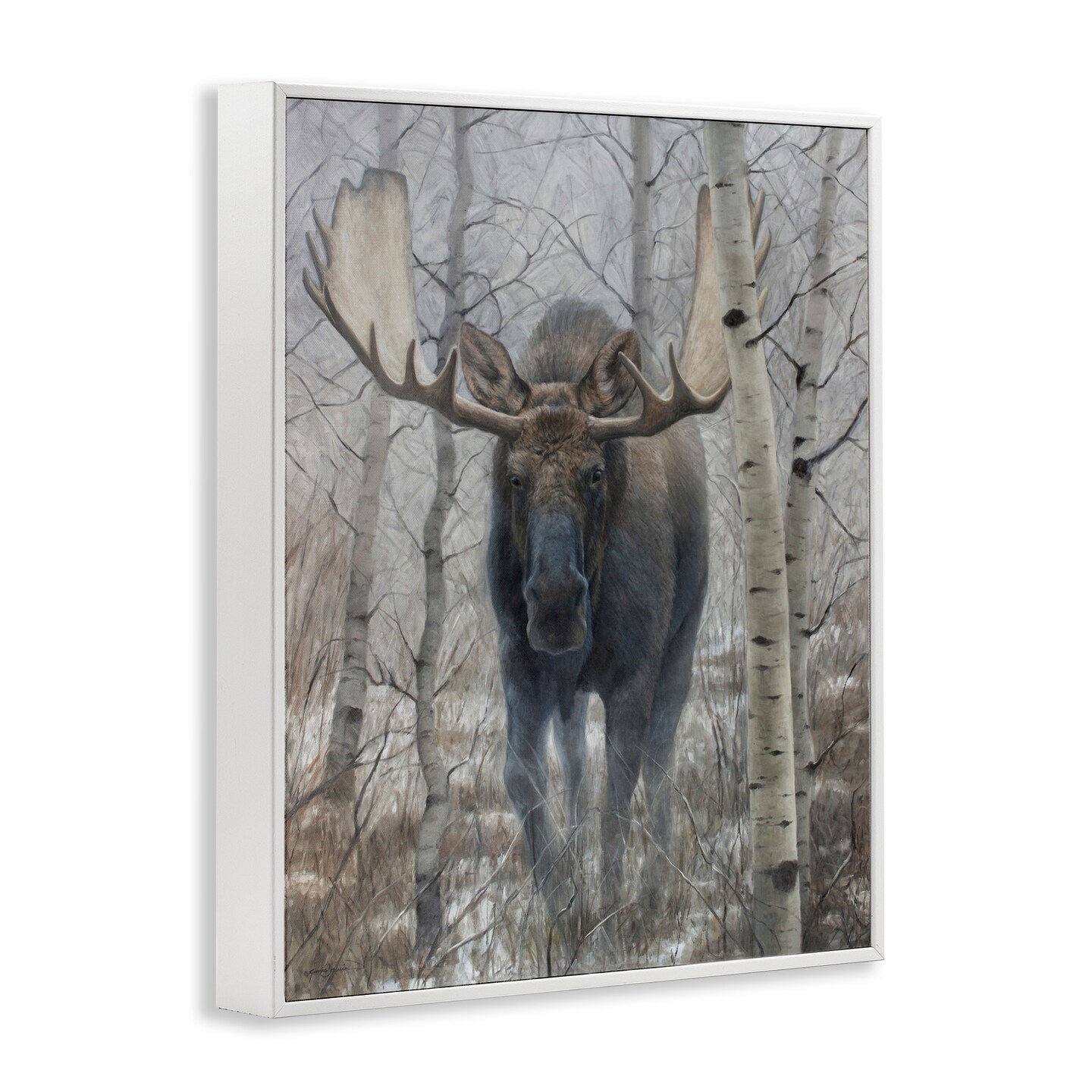 Stupell Industries Moose in Winter Birch Forest Framed Giclee, design by James Corwin