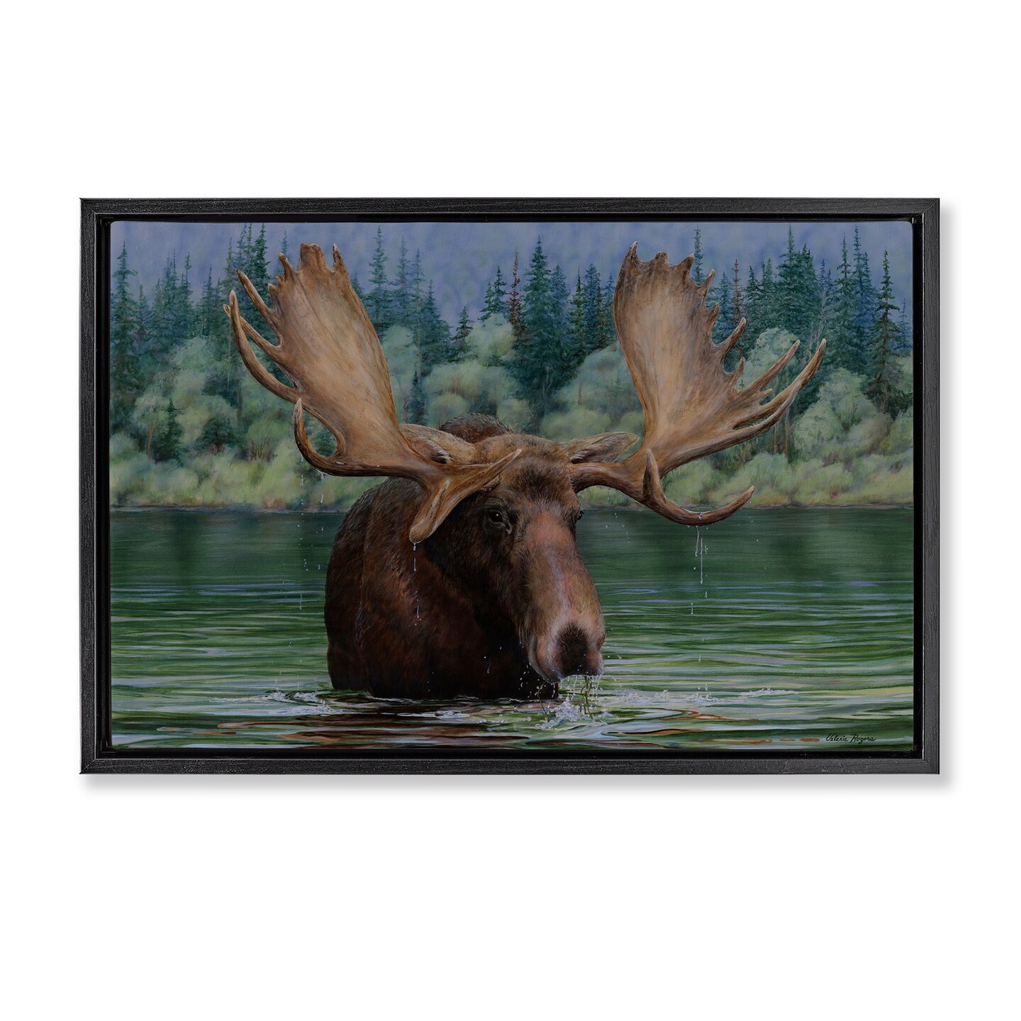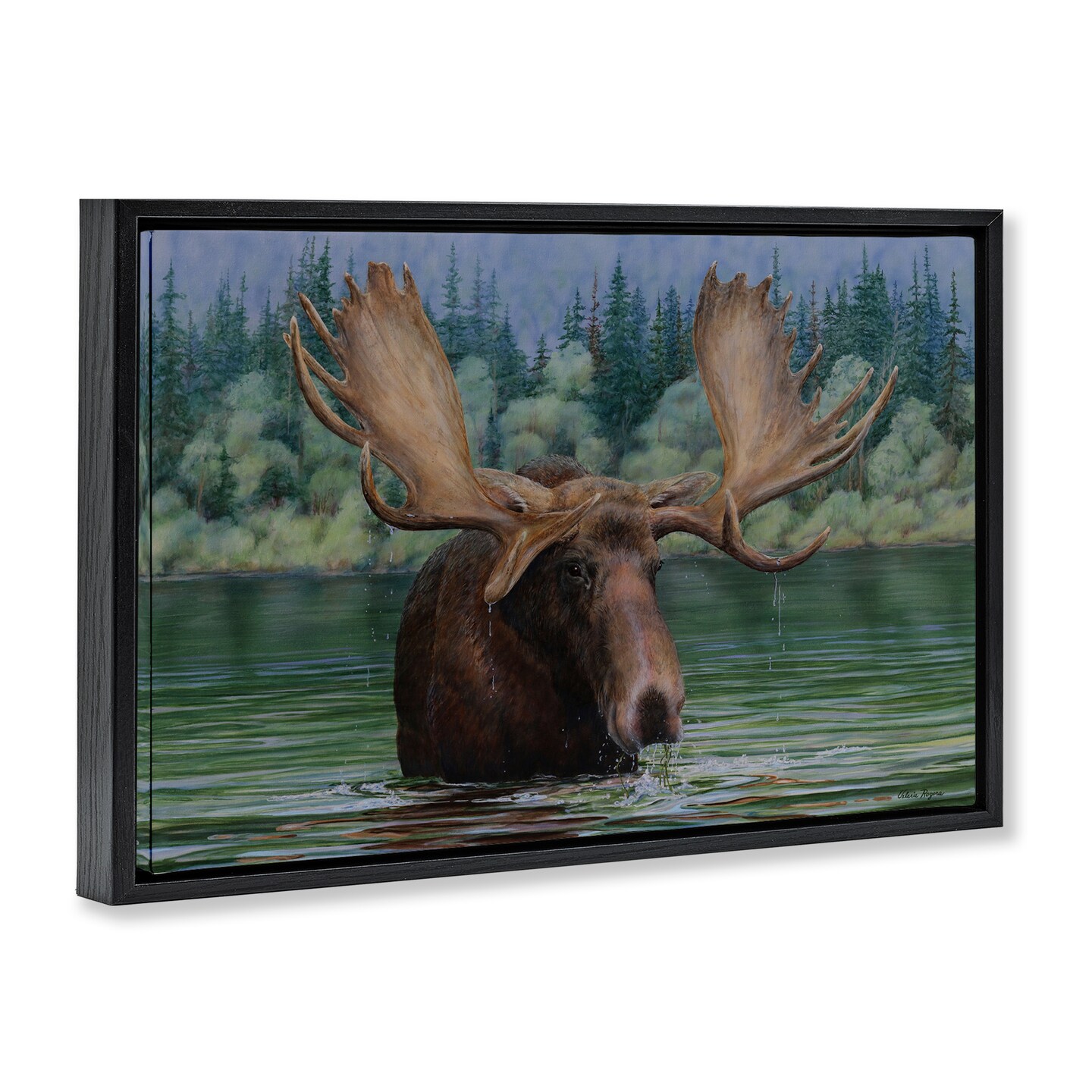 Stupell Industries Moose Swimming in Lake Floater Framed Canvas Wall Art Design by Valerie Rogers