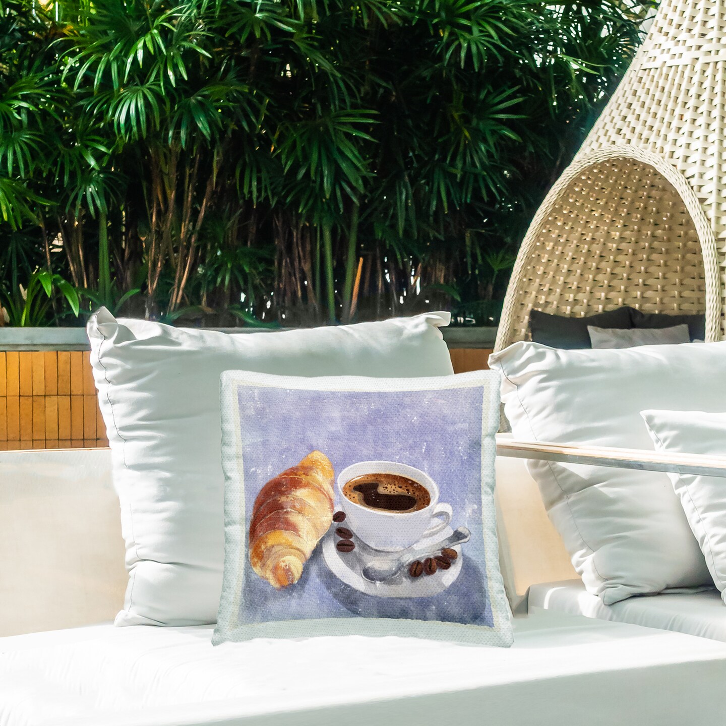 Stupell Industries Morning Coffee & Croissant Outdoor Printed Pillow design by Juliet Rose Philips , 18 x 7 x 18