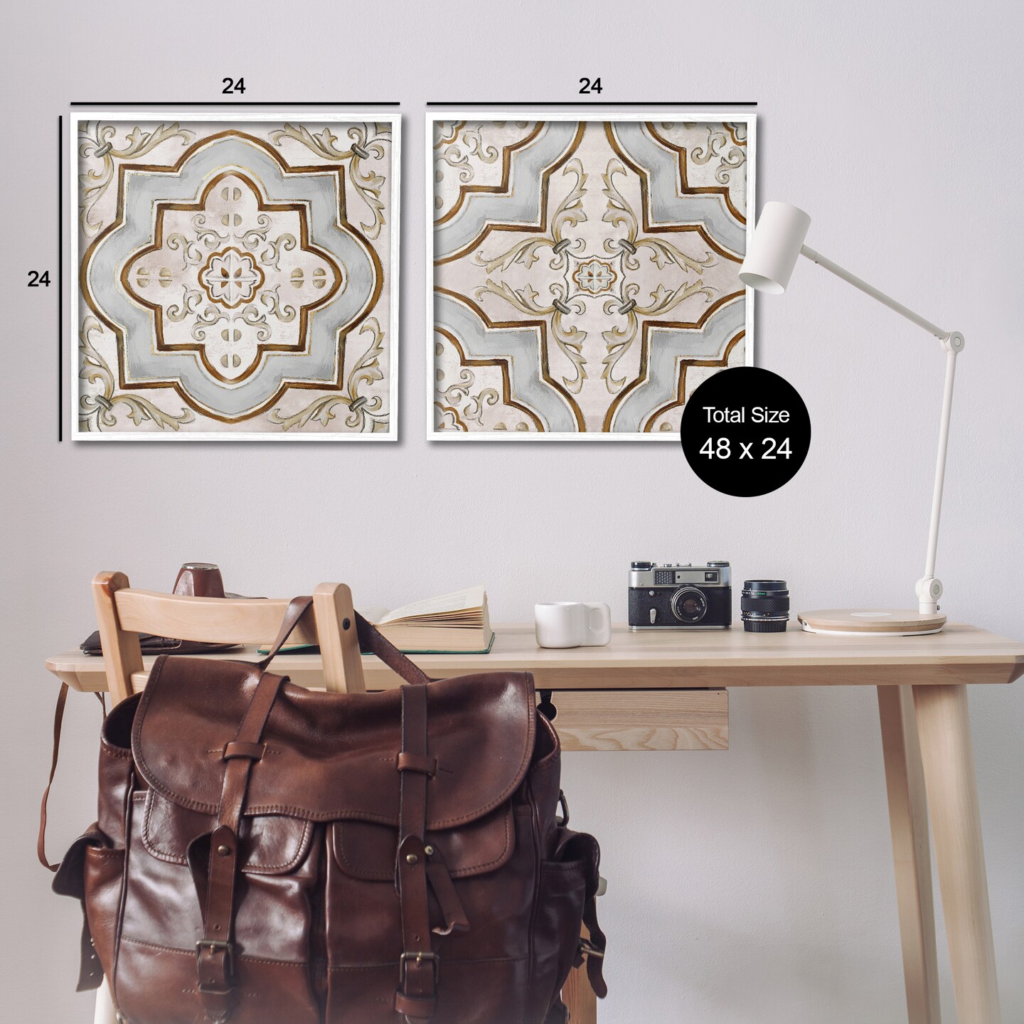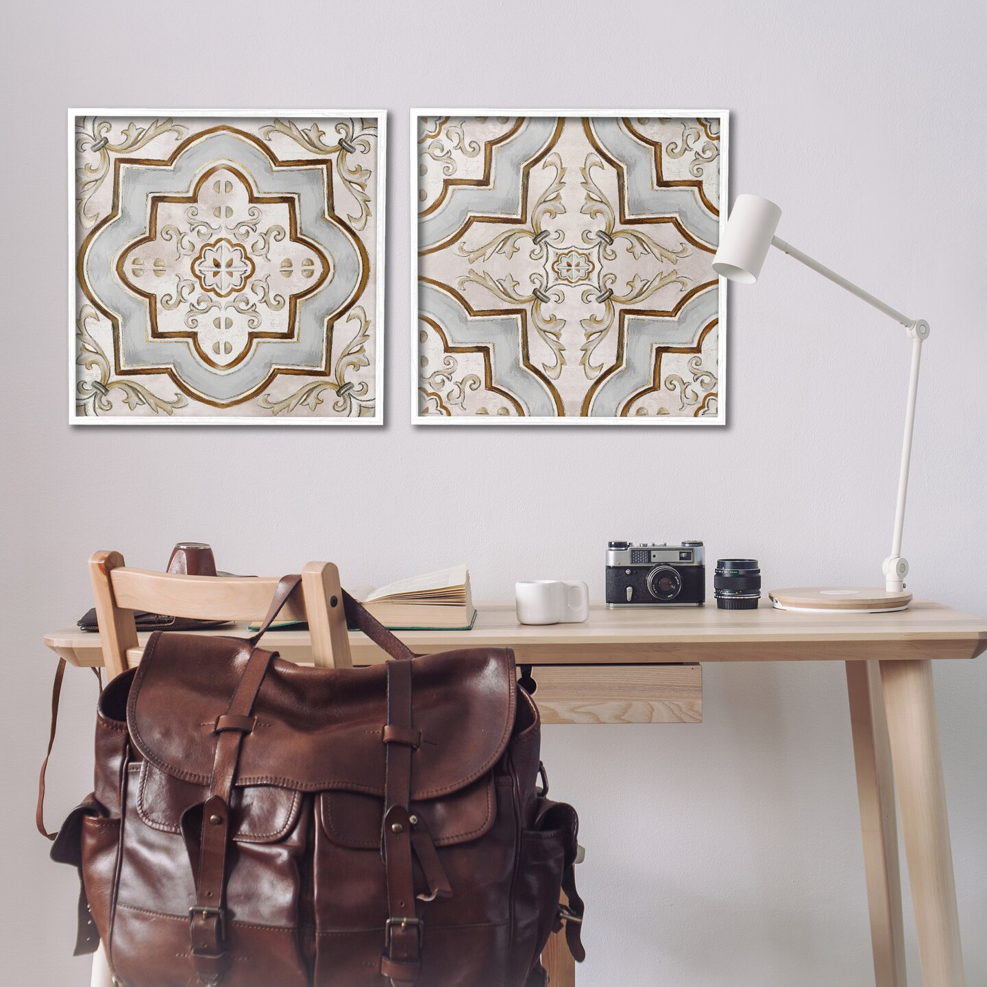 Stupell Industries Moroccan Tile in Neutrals 2pc Framed Giclee Wall Art Set Design by Irena Orlov