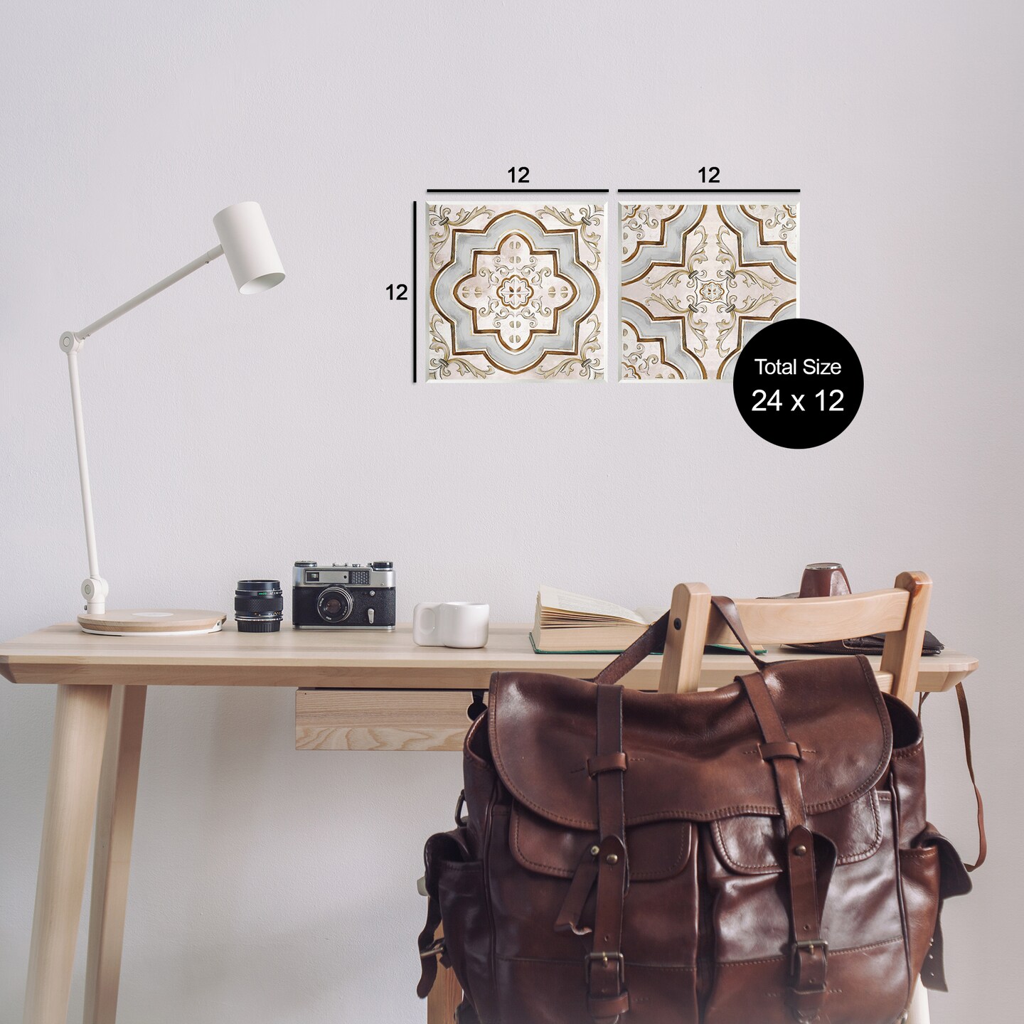 Stupell Industries Moroccan Tile in Neutrals 2pc Wall Plaque Art Set Design by Irena Orlov
