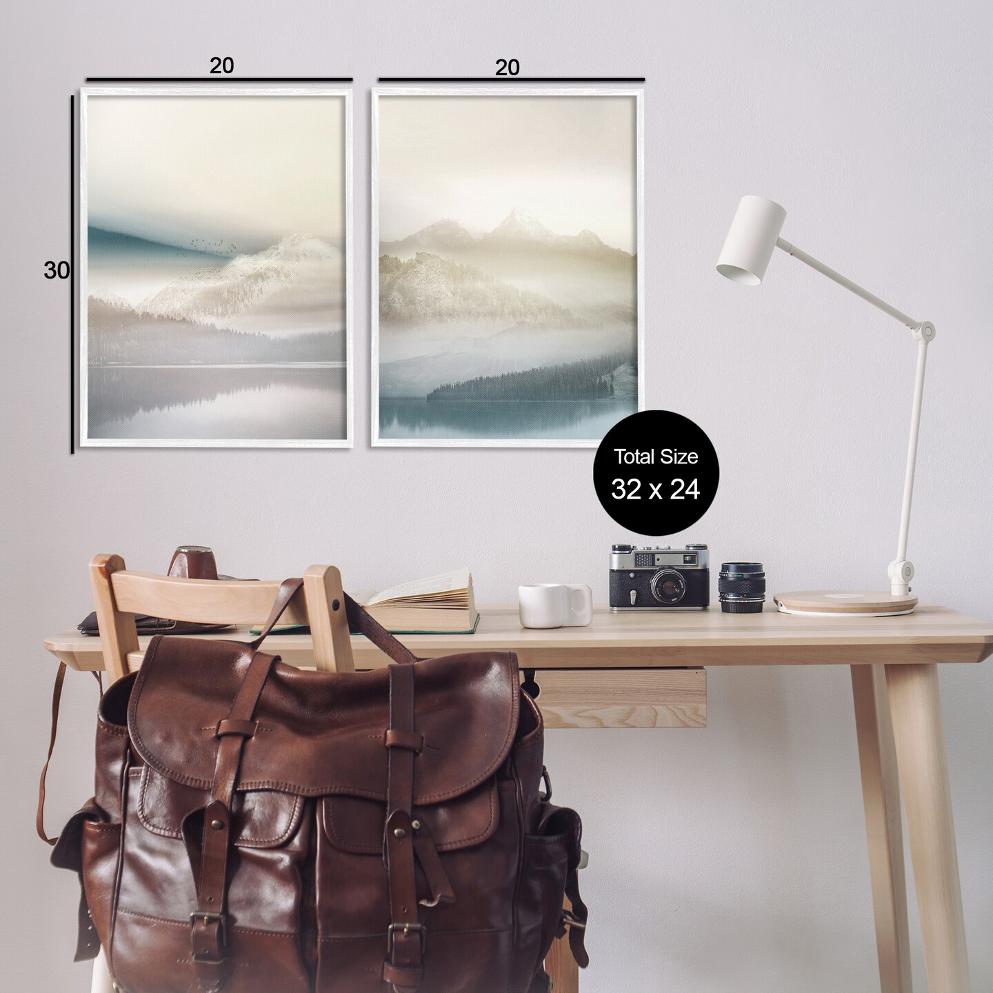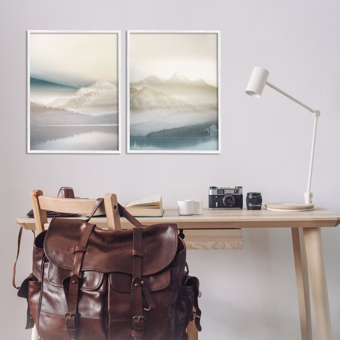 Stupell Industries Mountain Peaks & Neutral Lake 2pc Framed Giclee Set Design by Gemma Bardot