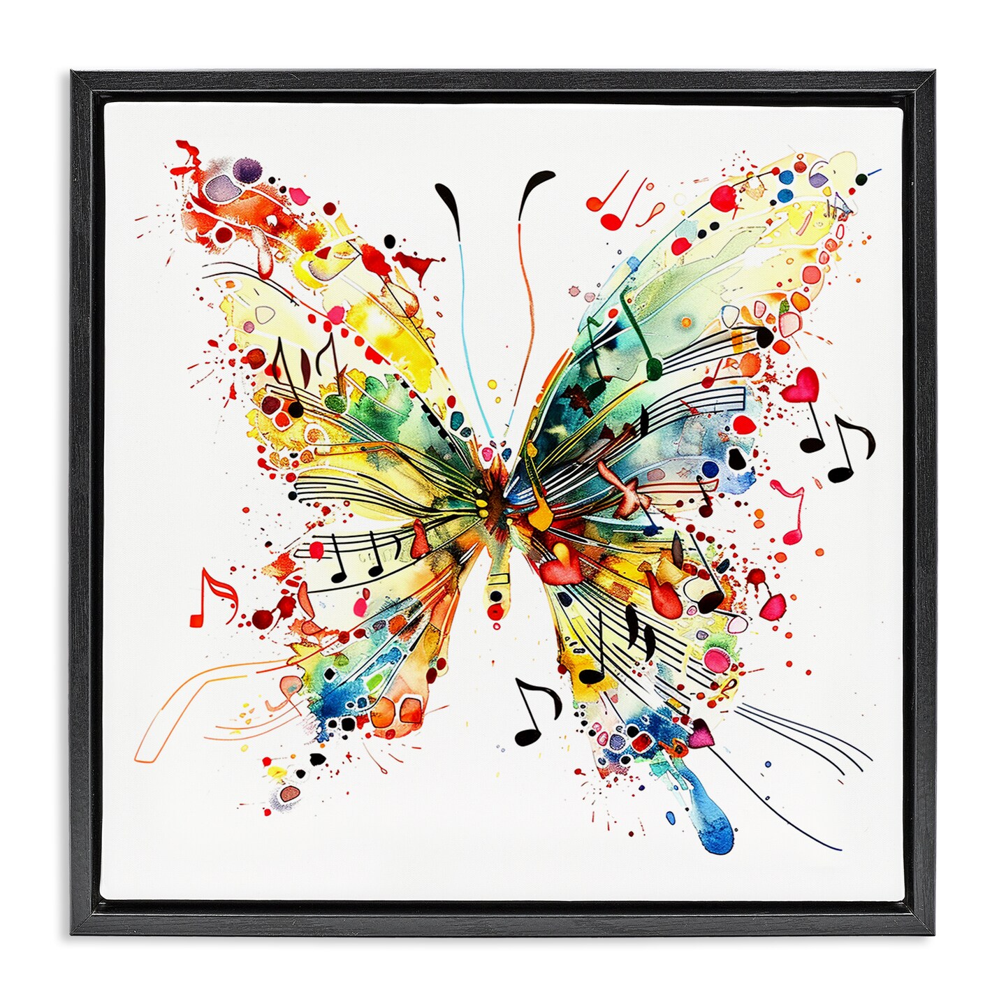 Stupell Industries Musical Song Butterfly Floater Framed Canvas Wall Art Design by LSR Design Studio