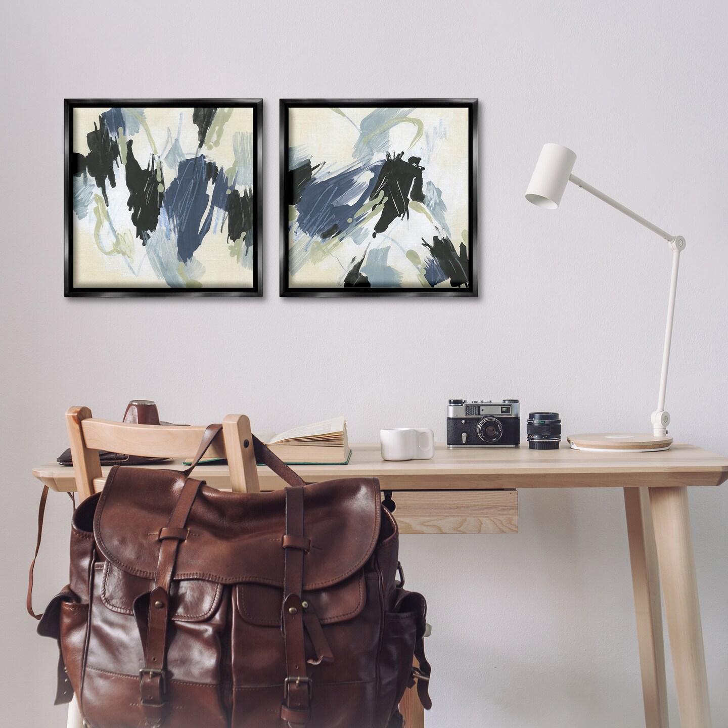 Stupell Industries Muted Blue Green Abstract Patches 2 pc Framed Floater Canvas Wall Art Set Design by June Erica Vess