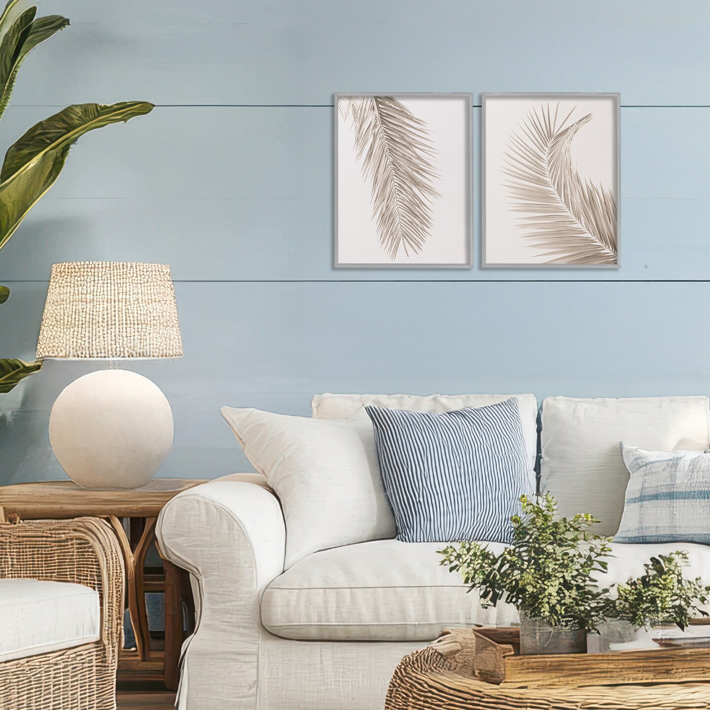 Stupell Industries Muted Neutral Brown Palms 2pc Framed Giclee Set, design by Sisi and Seb