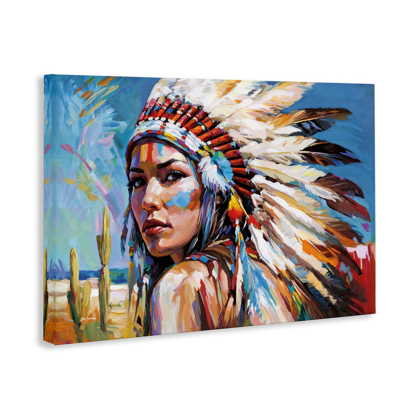 Stupell Industries Native American Woman Portrait Canvas Wall Art Design by Leon Devenice
