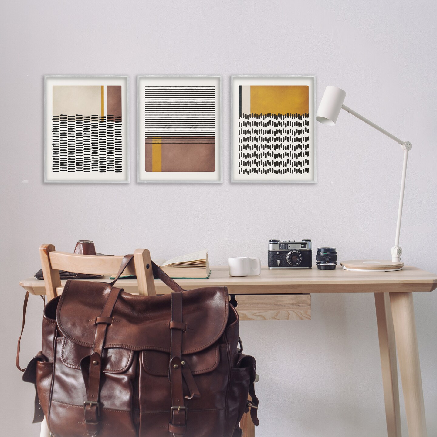 Stupell Industries Natural Lines Pattern Abstract 3pc Framed Giclee Wall Art Set Design by JJ Design House, LLC.