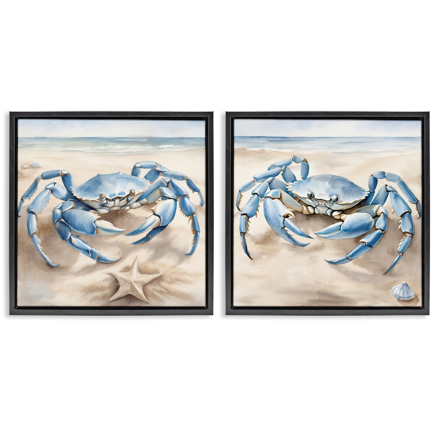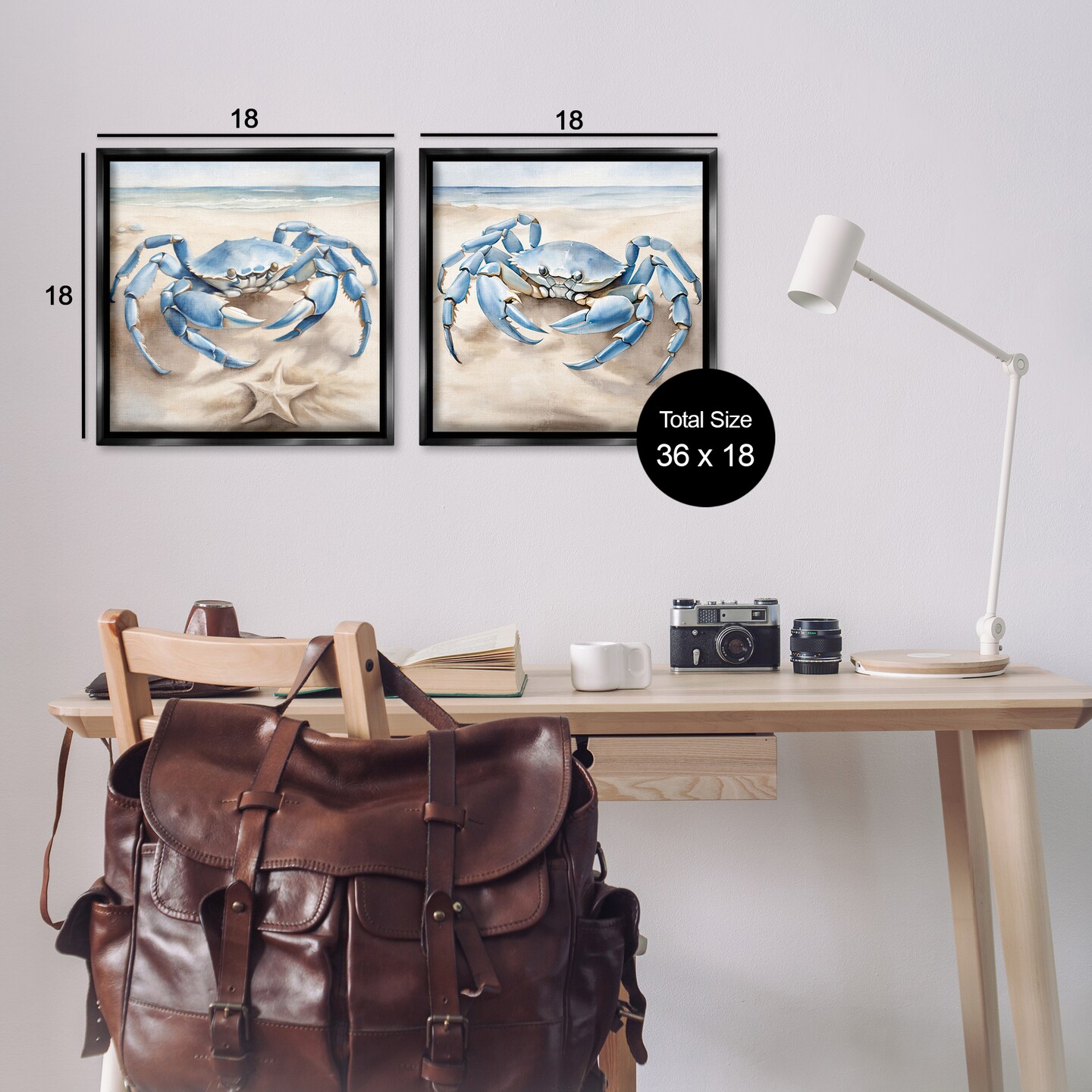 Stupell Industries Nautical Blue Crabs Beach 2 pc Framed Floater Canvas Wall Art Set Design by Kim Allen