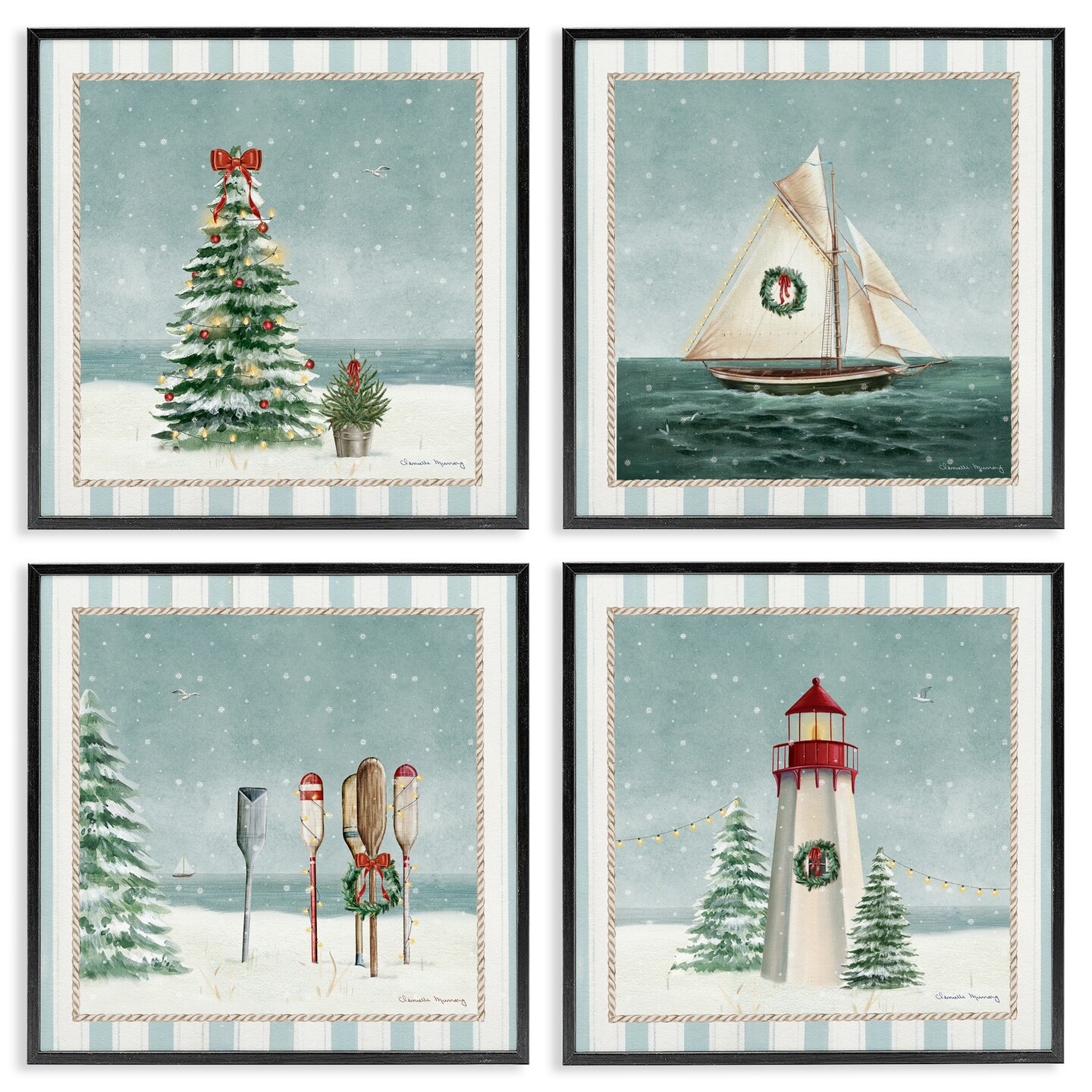 Stupell Industries Nautical Christmas Scenes 4pc Framed Giclee Set, design by Danielle Murray