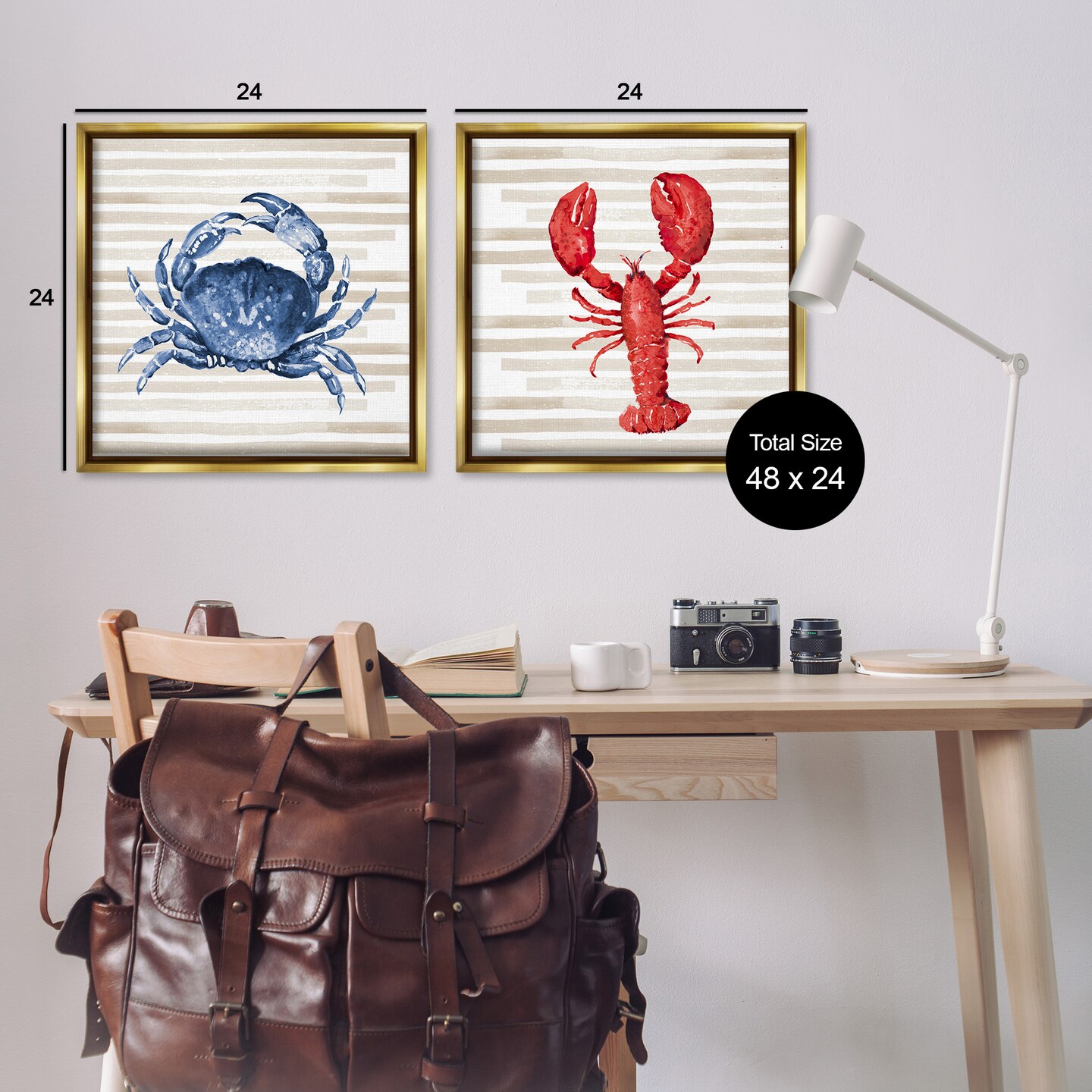 Stupell Industries Nautical Crab & Lobster Beige Stripes Framed Floater Canvas Wall Art