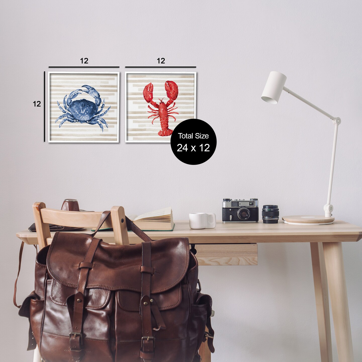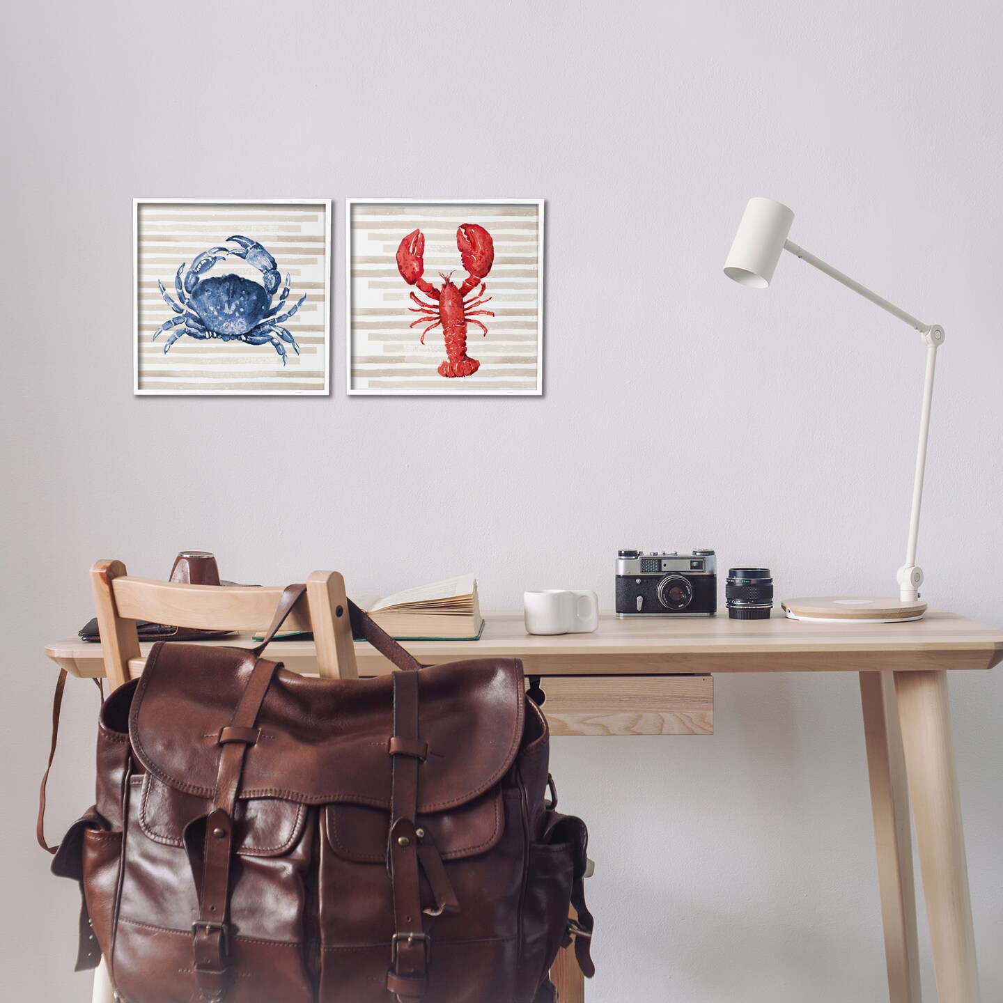 Stupell Industries Nautical Crab & Lobster Beige Stripes Framed Giclee Art