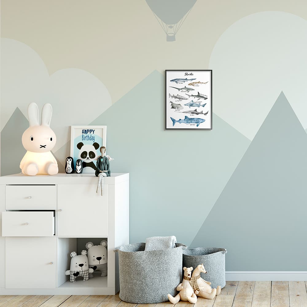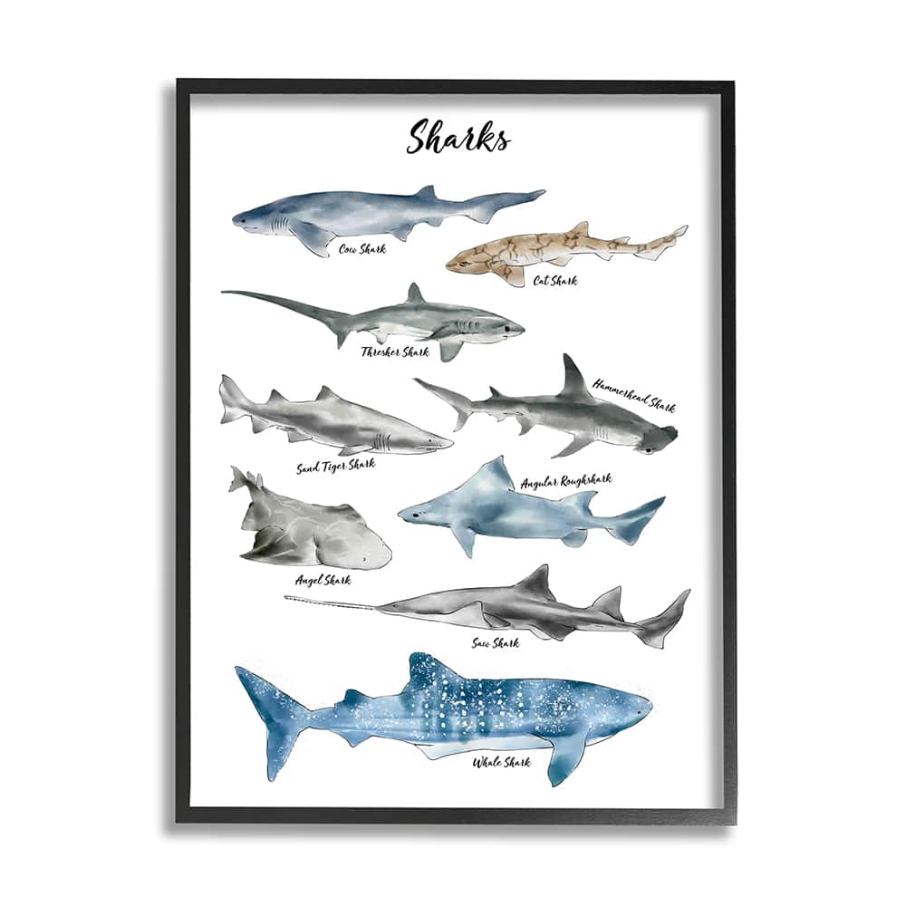 Stupell Industries Nautical Shark Chart Watercolor Marine Animals Framed Wall Art