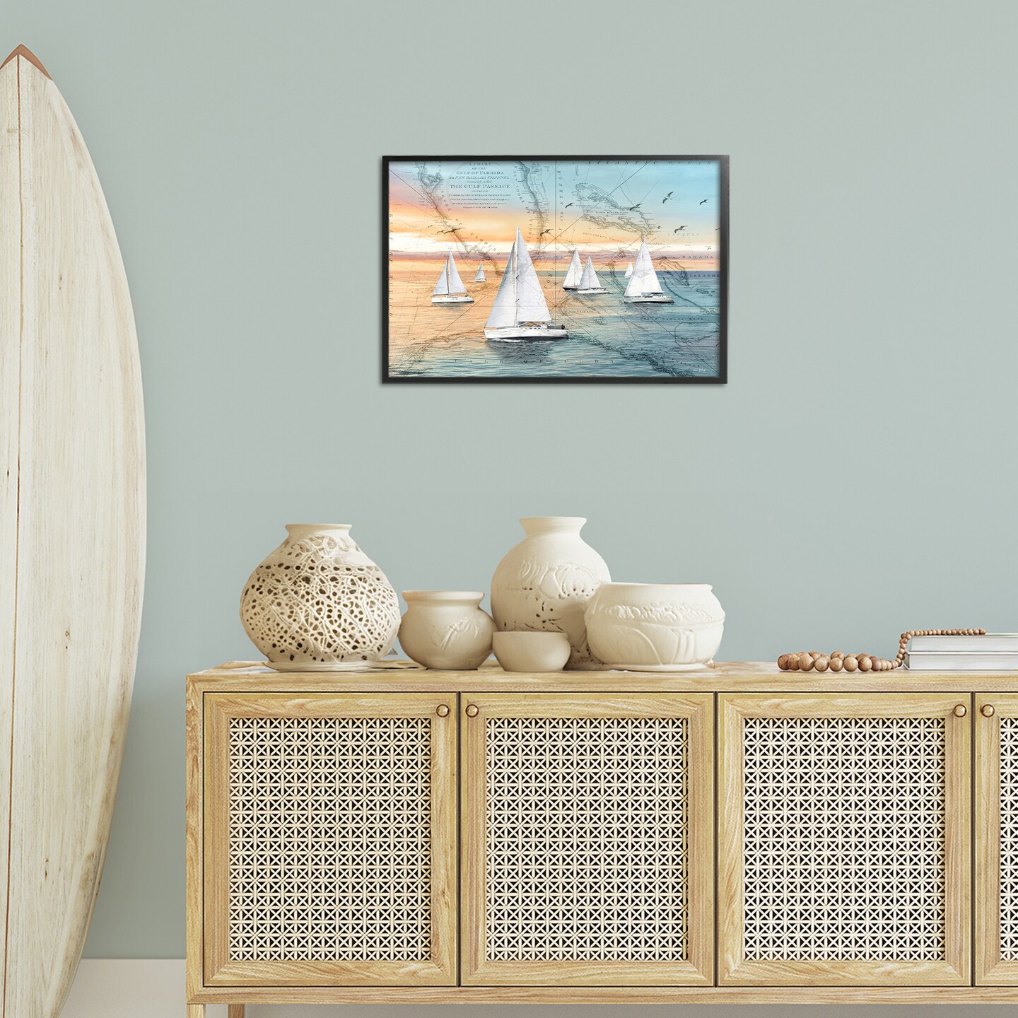 Stupell Industries Nautical Ships & Vintage Map Framed Giclee Design by Amber Sterling