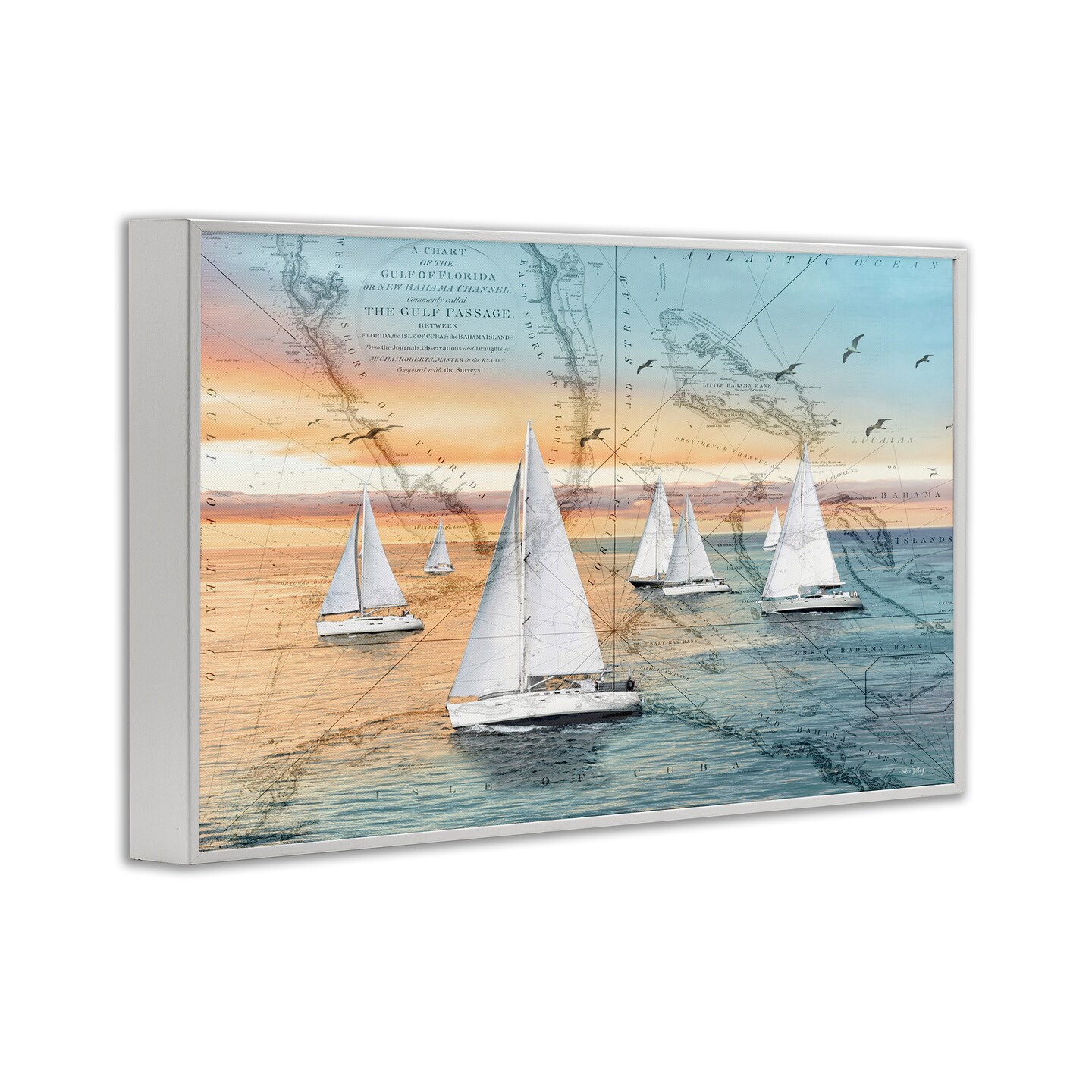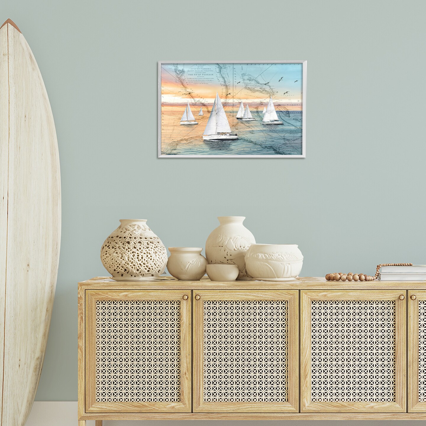 Stupell Industries Nautical Ships & Vintage Map Framed Giclee Design by Amber Sterling