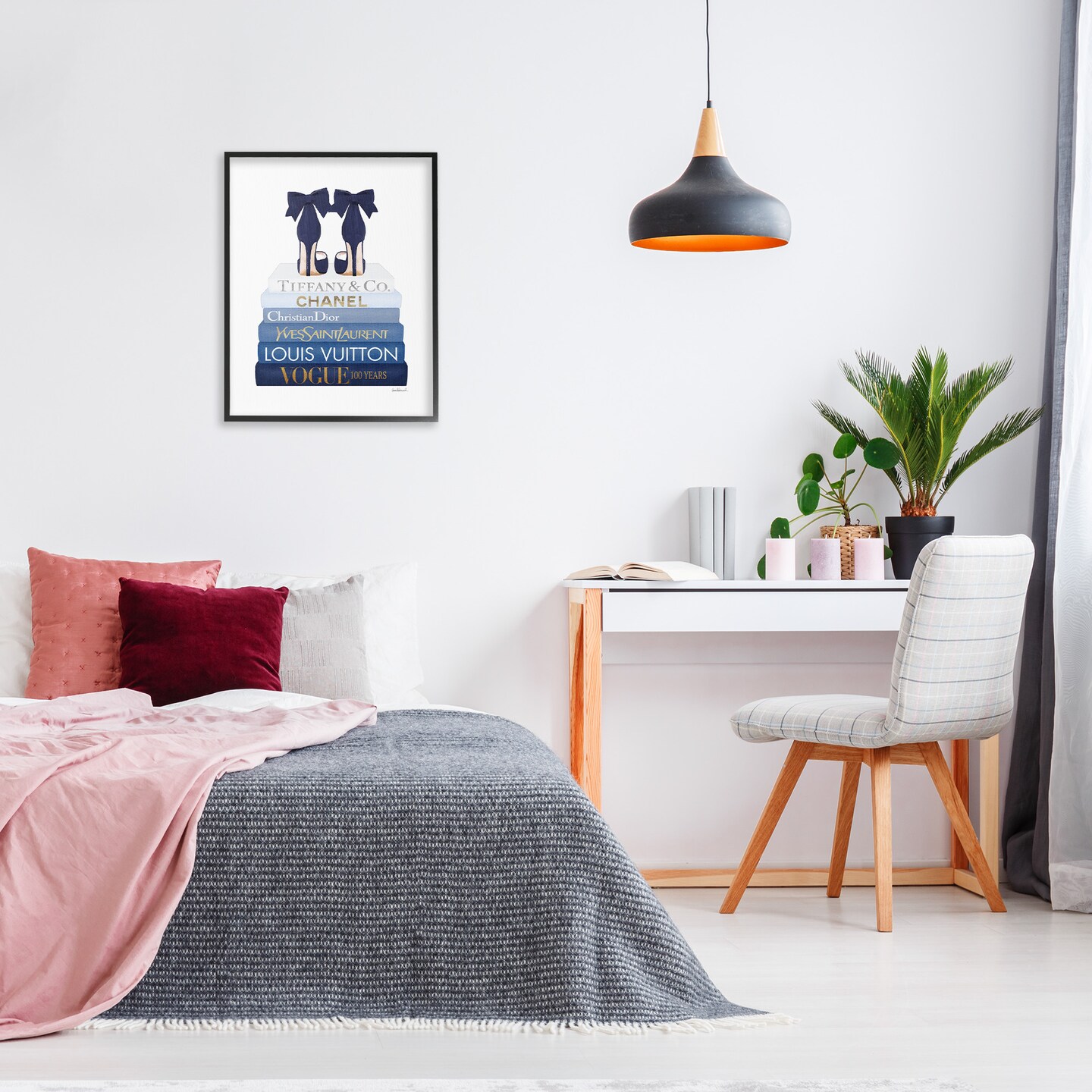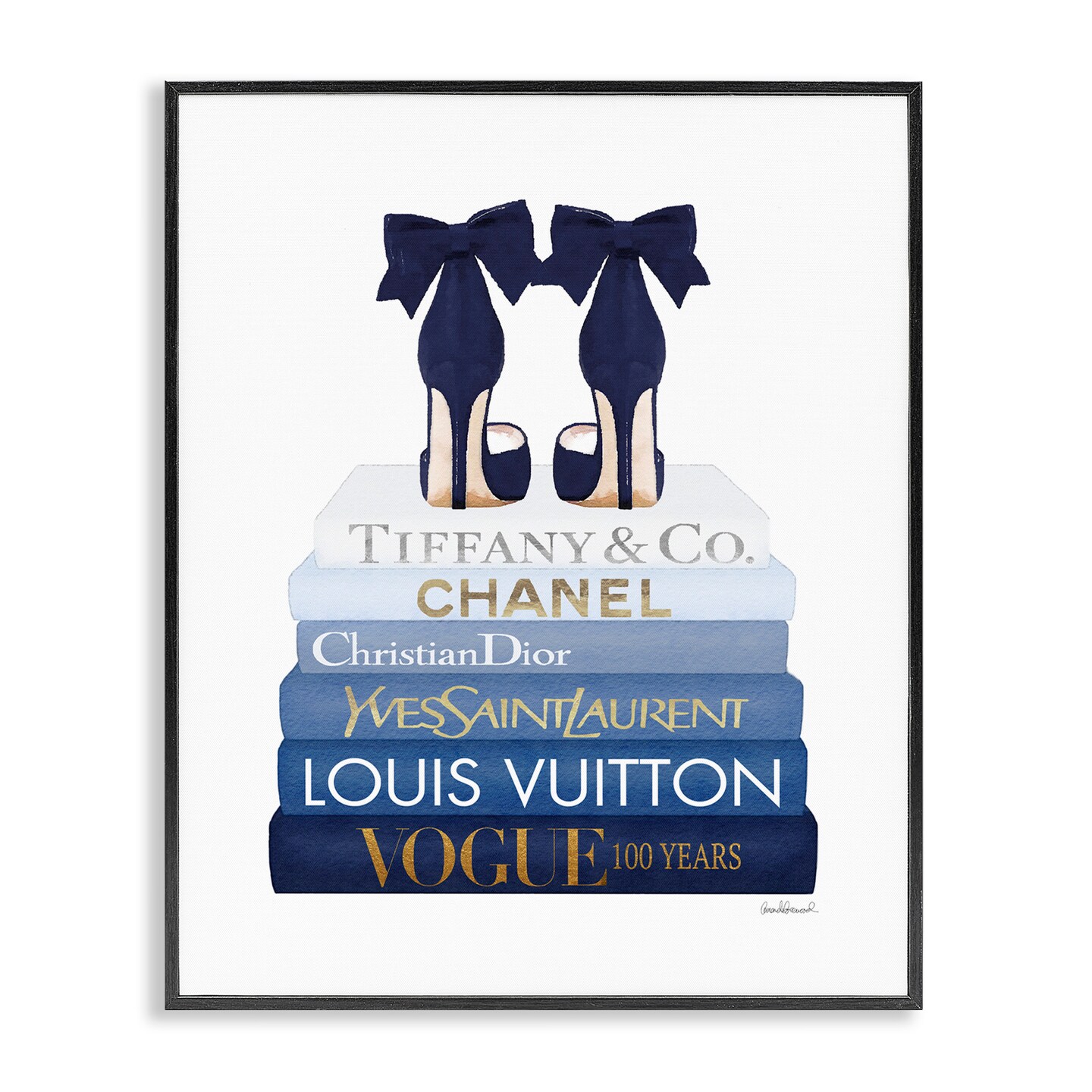 Stupell Industries Navy Blue Heels Chic Bookstack Framed Giclee Art