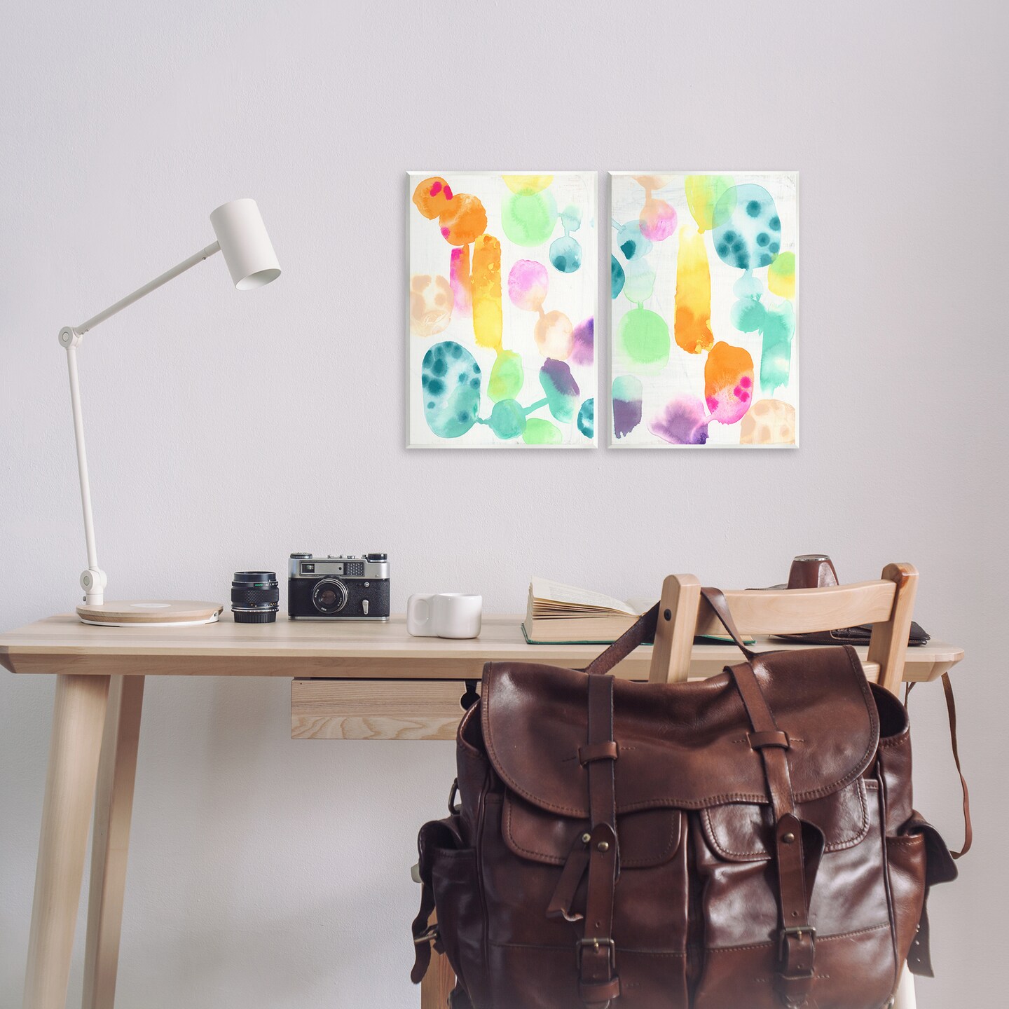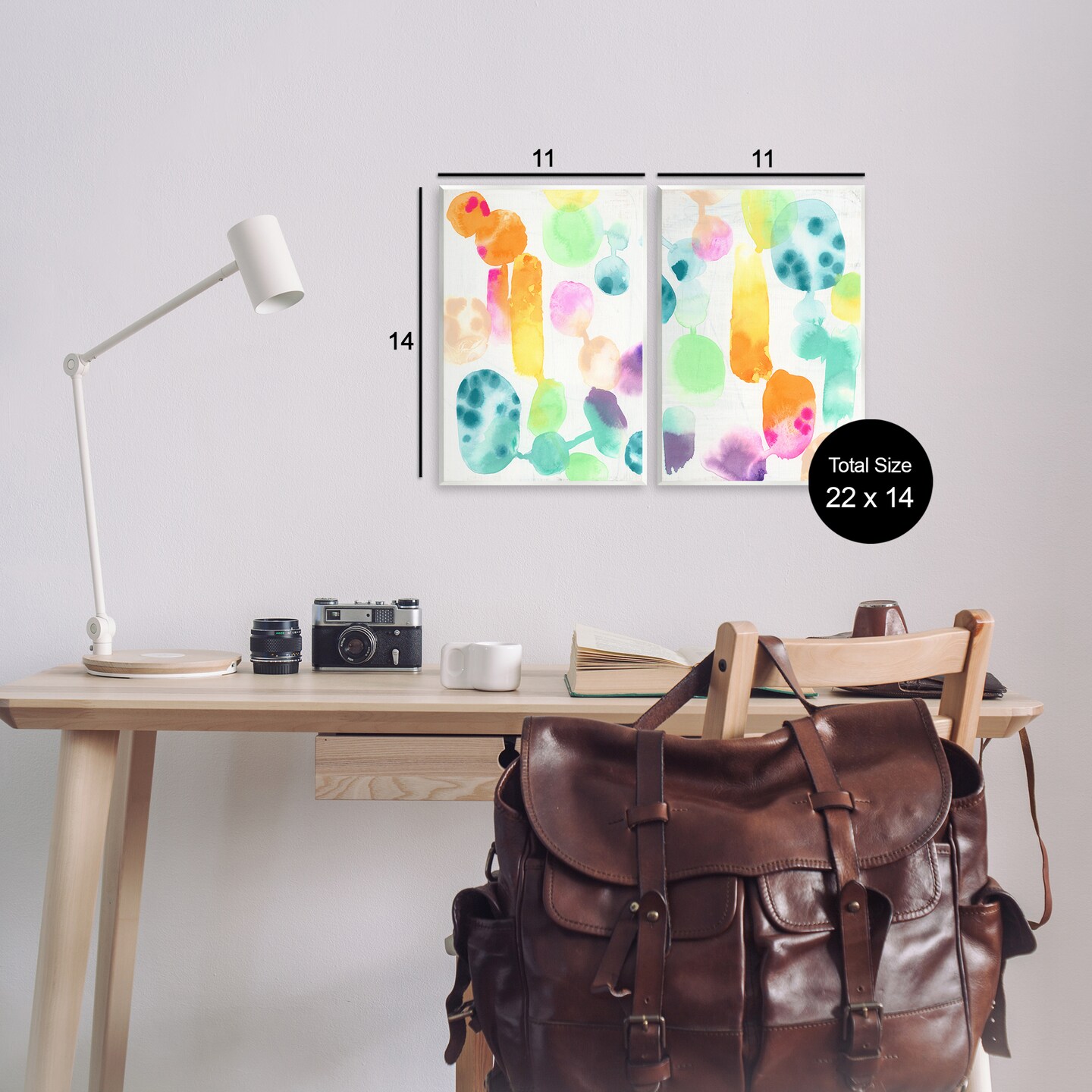 Stupell Industries Neon Colorful Abstract Shapes 2 pc Wall Plaque Art Set Design by June Erica Vess