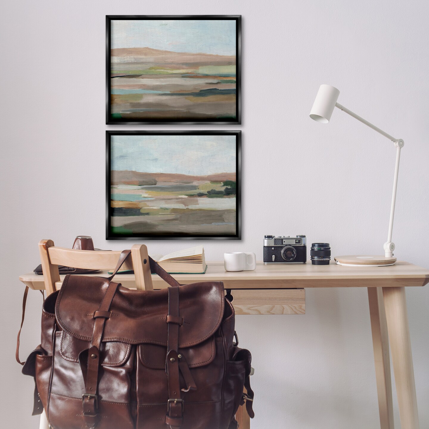 Stupell Industries Neutral Abstract Landscape 2 pc Framed Floater Canvas Wall Art Set Design by Ethan Harper