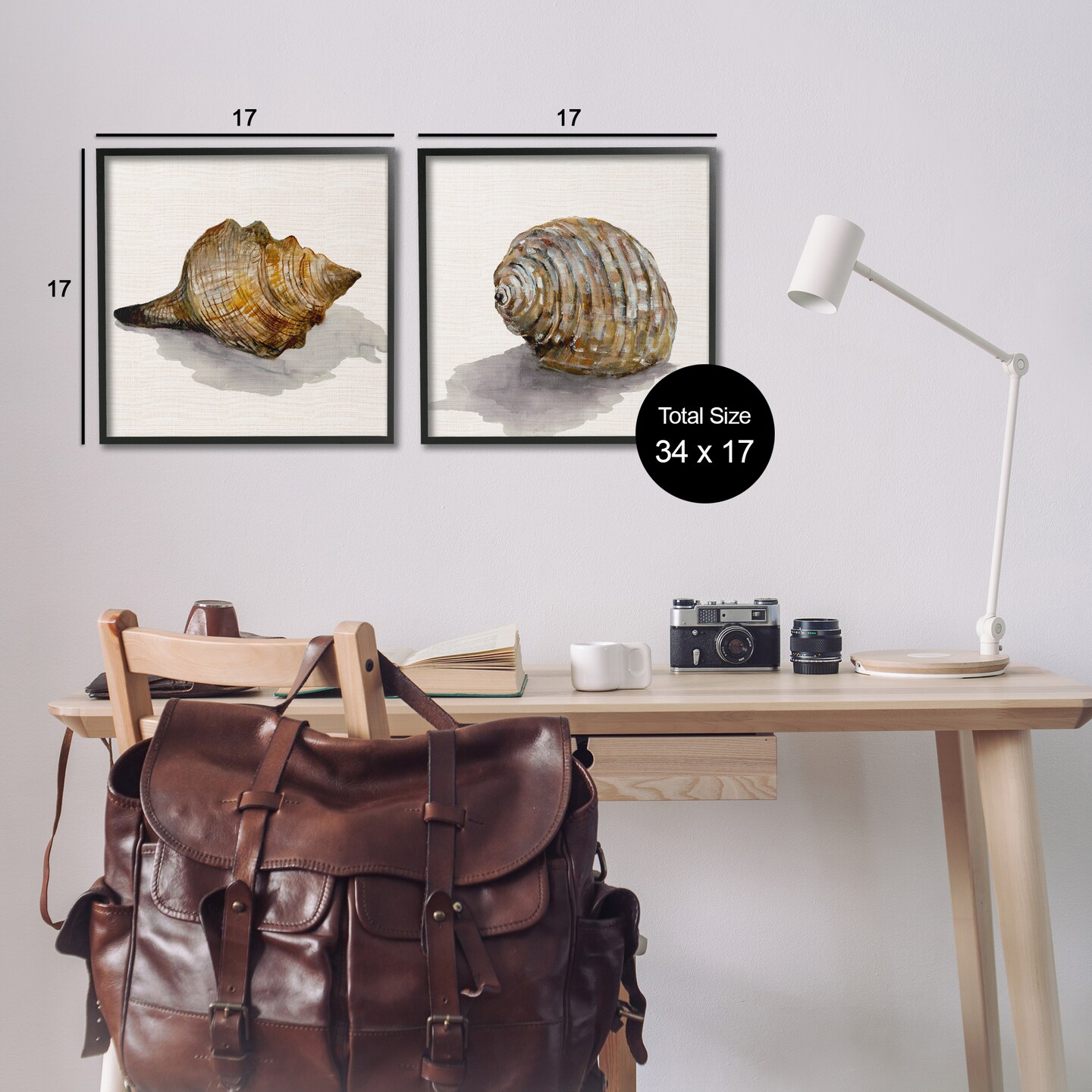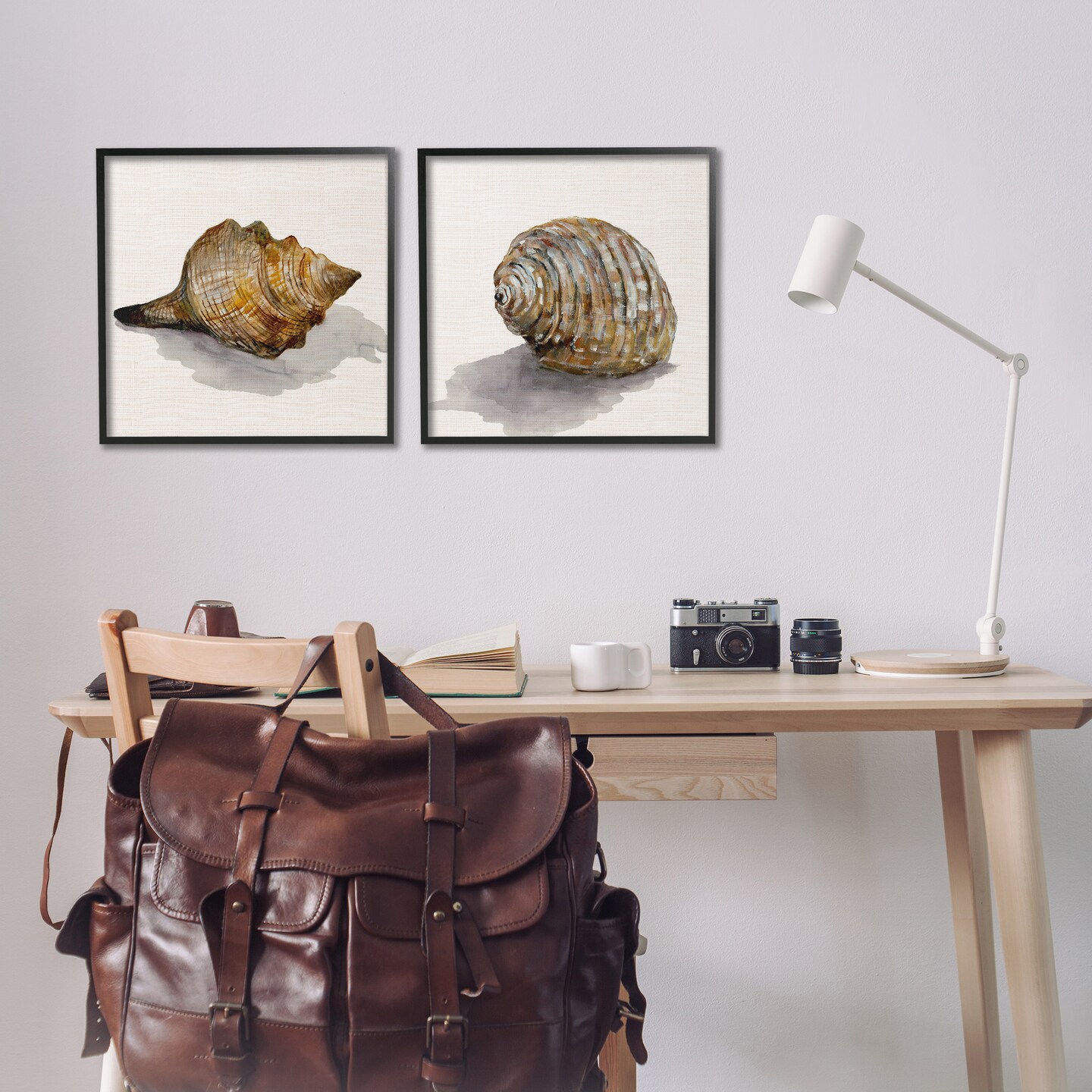 Stupell Industries Neutral Beach Shells 2pc Framed Giclee Wall Art Set Design by Jacob Q