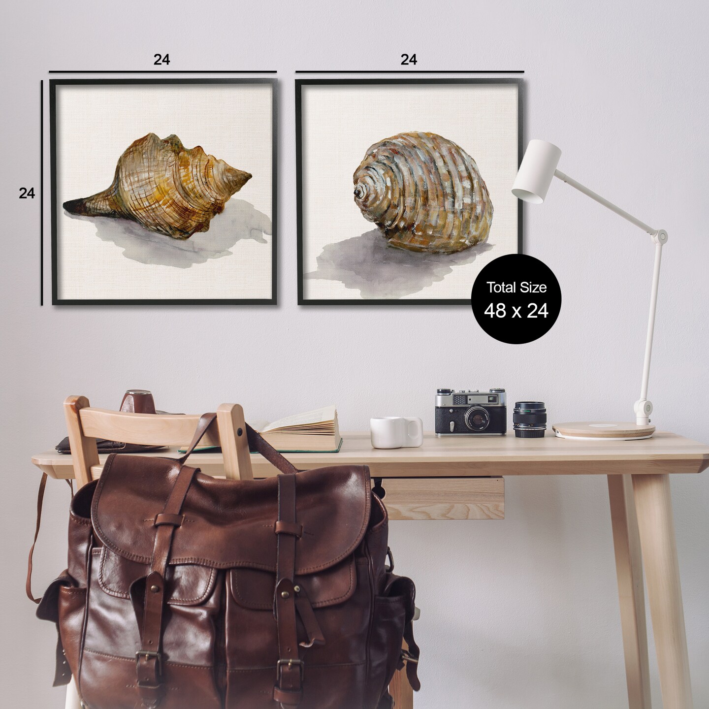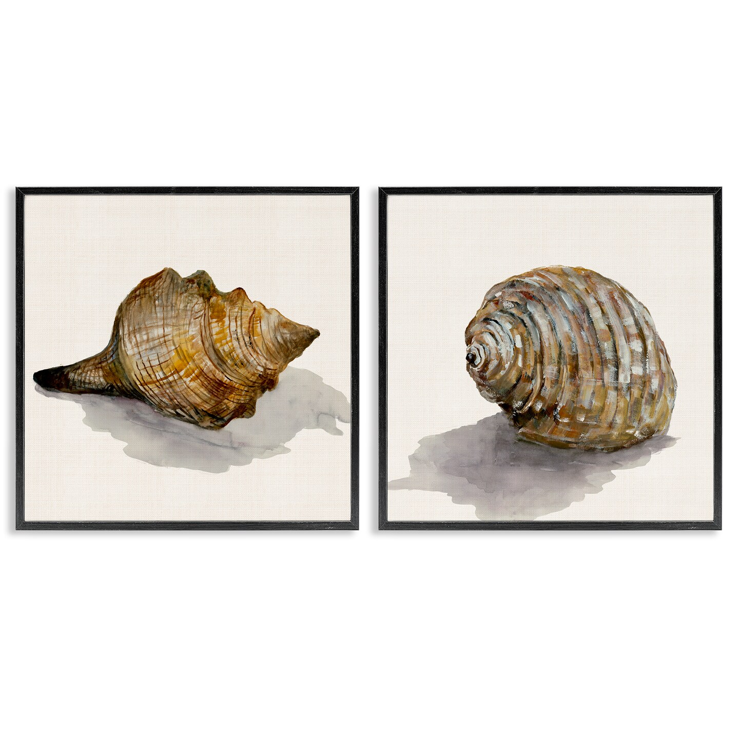 Stupell Industries Neutral Beach Shells 2pc Framed Giclee Wall Art Set Design by Jacob Q