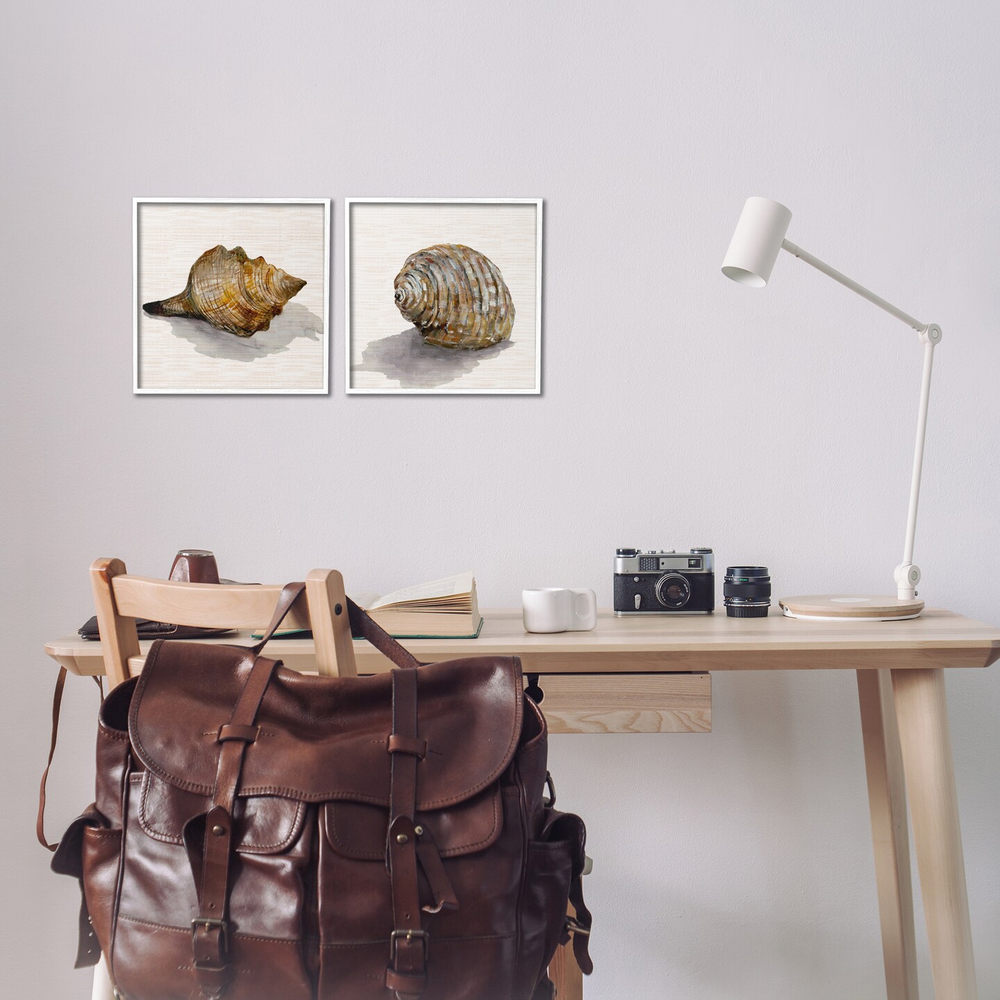 Stupell Industries Neutral Beach Shells 2pc Framed Giclee Wall Art Set Design by Jacob Q