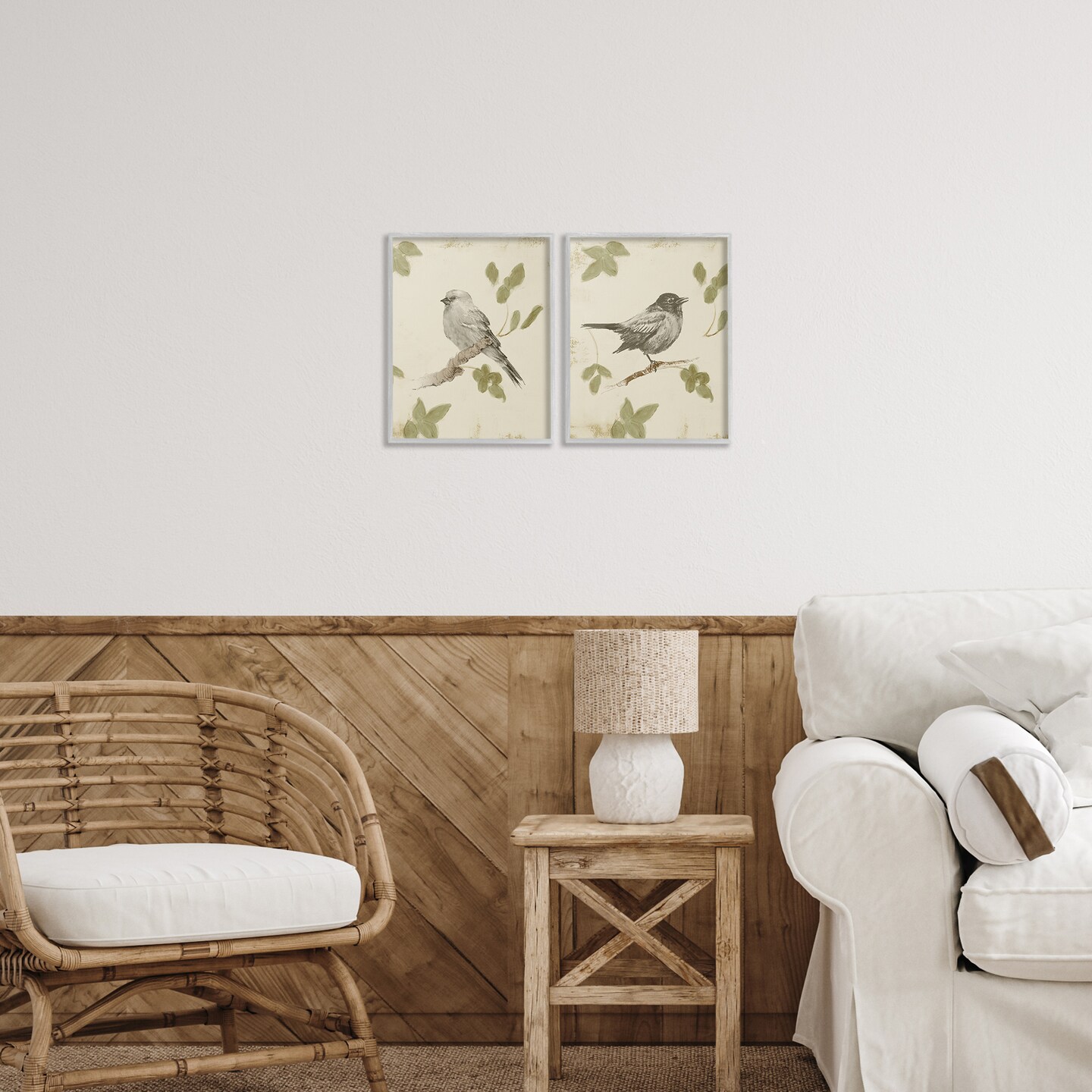 Stupell Industries Neutral Bird Scene 2pc Framed Giclee Set, design by Lanie Loreth