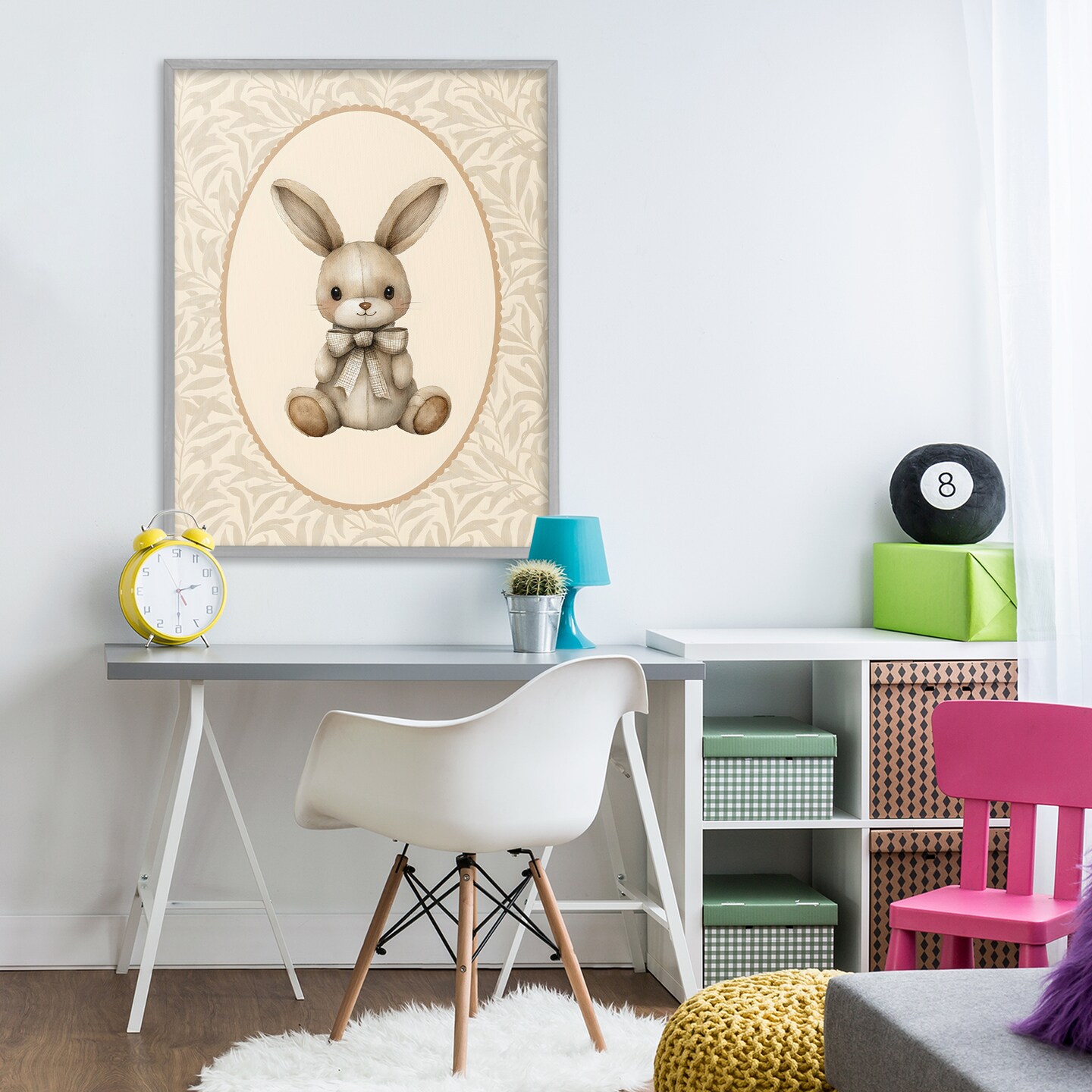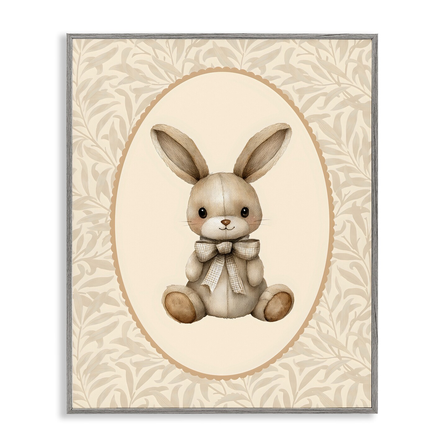 Stupell Industries Neutral Bunny in Oval Border Framed Giclee, design by LSR Design Studio