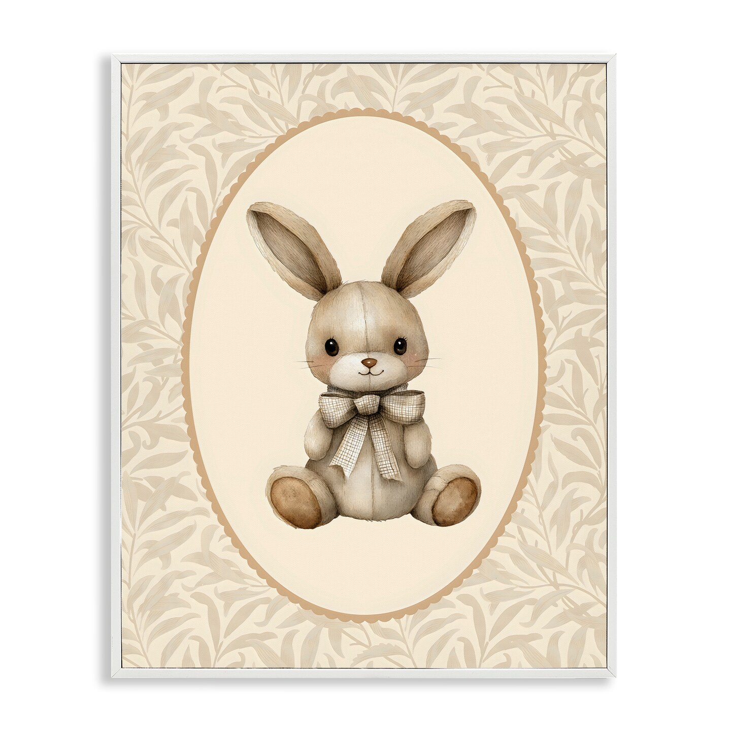 Stupell Industries Neutral Bunny in Oval Border Framed Giclee, design by LSR Design Studio