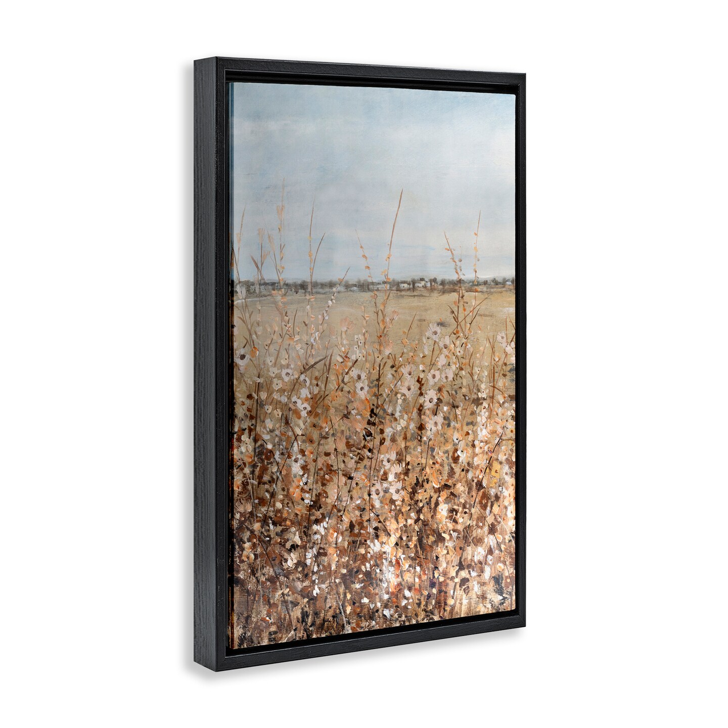 Stupell Industries Neutral Meadow Sprigs Framed Floater Canvas Wall Art Design by June Erica Vess