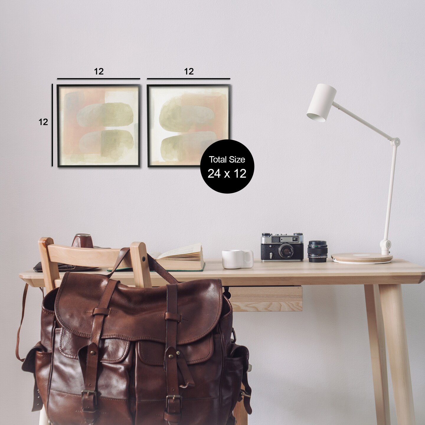 Stupell Industries Neutral Oblong Shapes Abstract 2pc Framed Giclee Wall Art Set Design by June Erica Vess