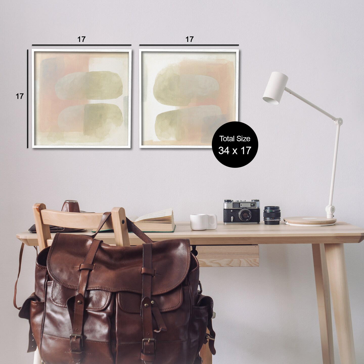 Stupell Industries Neutral Oblong Shapes Abstract 2pc Framed Giclee Wall Art Set Design by June Erica Vess