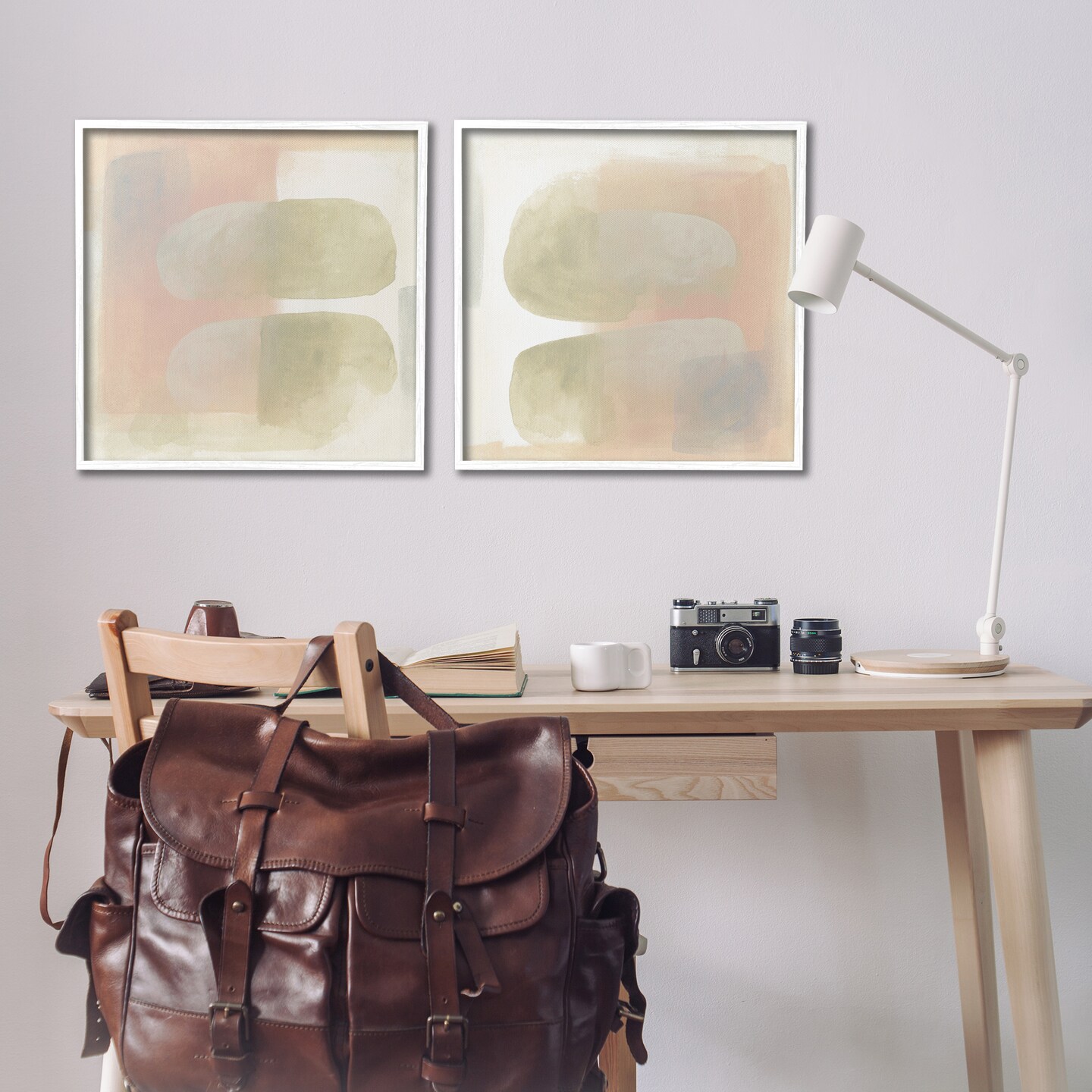 Stupell Industries Neutral Oblong Shapes Abstract 2pc Framed Giclee Wall Art Set Design by June Erica Vess