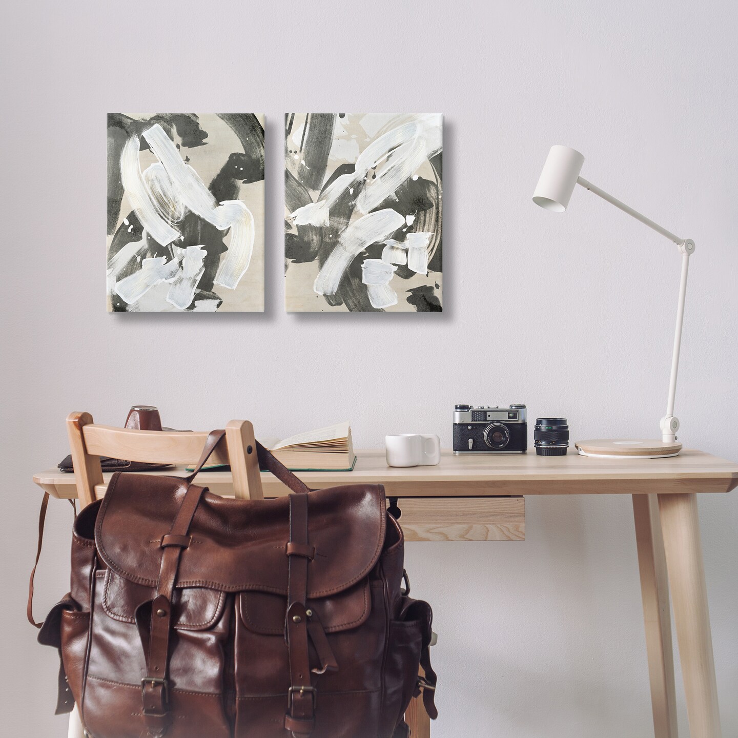 Stupell Industries Neutral Paint Streaks 2pc Canvas Wall Art Set Design by June Erica Vess