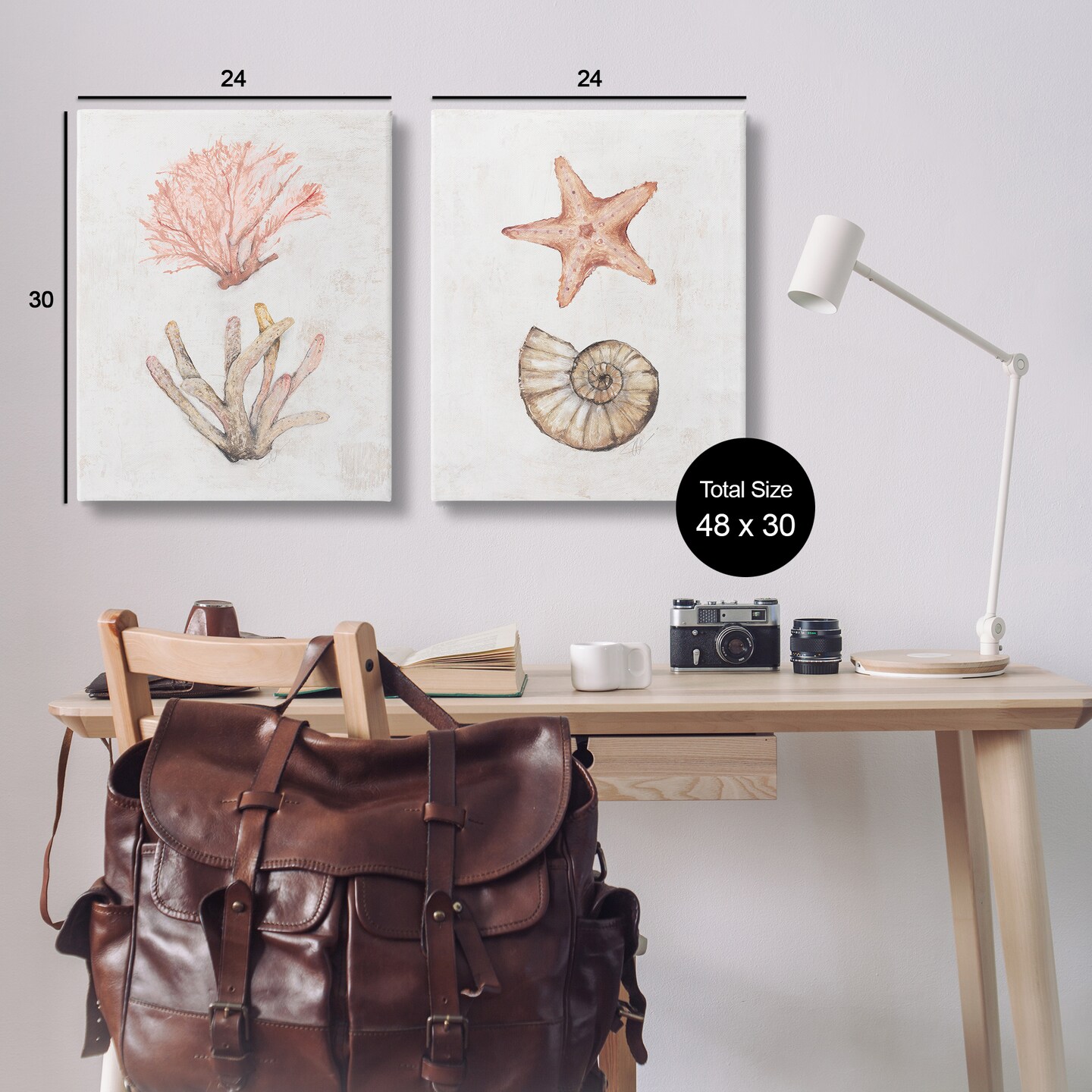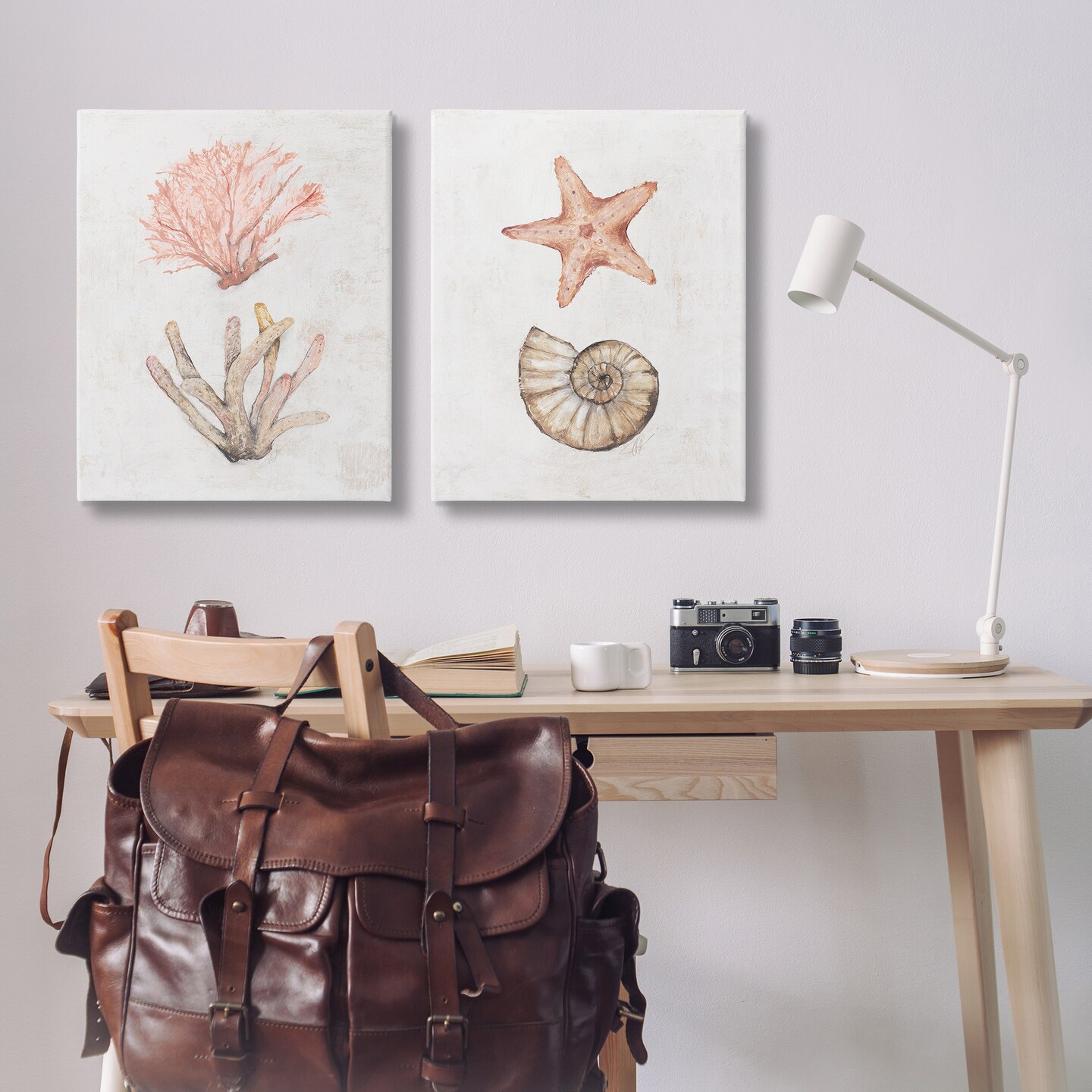 Stupell Industries Neutral Pastel Sea Life 2pc Canvas Wall Art Set Design by Filippo Ioco