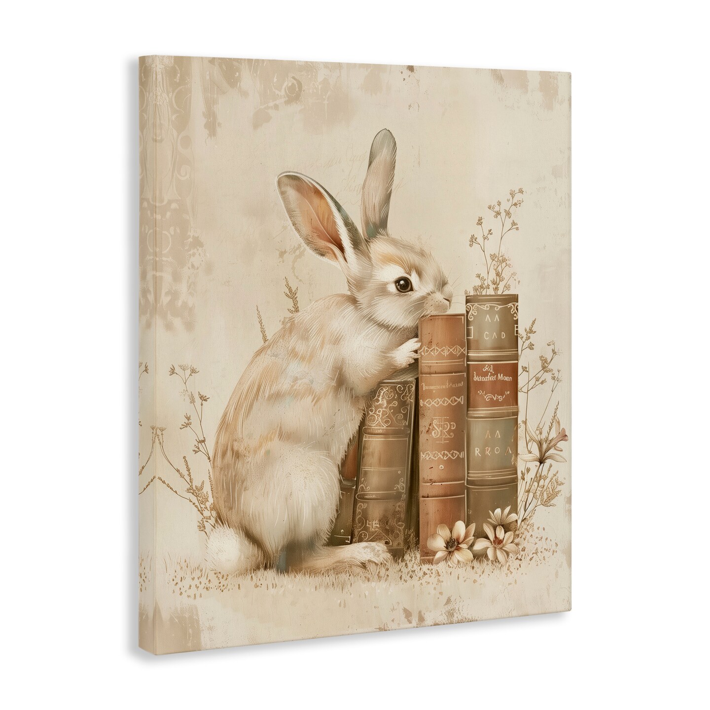 Stupell Industries Neutral Rabbit & Books Canvas By Arlington Prints