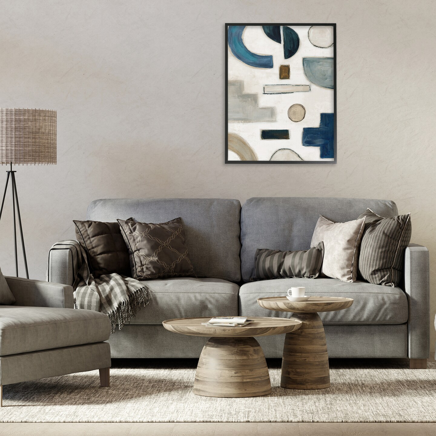 Stupell Industries Neutral Shapes Blue & Beige Framed Giclee Wall Art Design by Emma Peal
