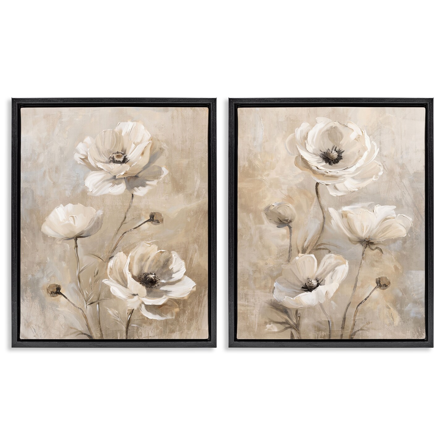 Stupell Industries Neutral Toned Flora 2pc Floater Framed Canvas Wall Art Set Design by Nina Blue