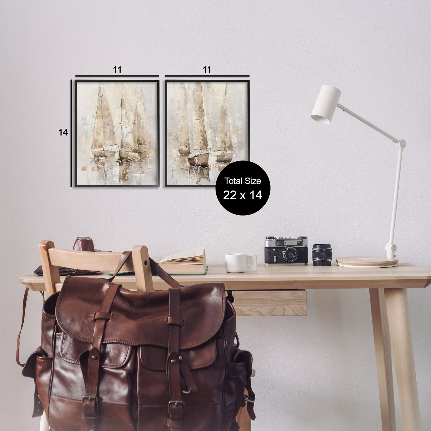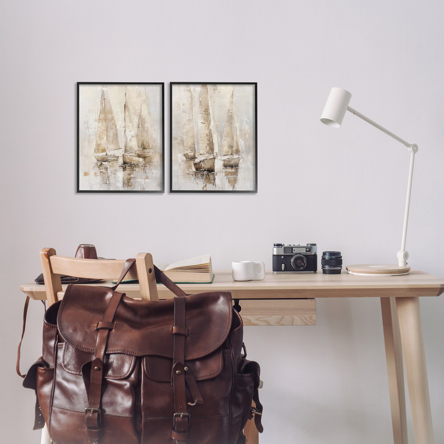 Stupell Industries Neutral Toned Sailboats 2pc Framed Giclee Wall Art Set Design by Nina Blue