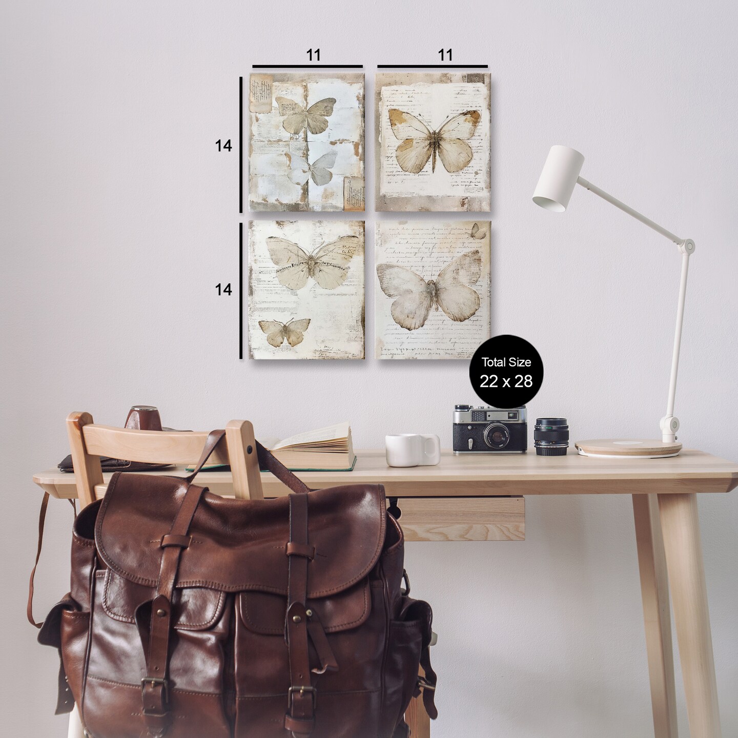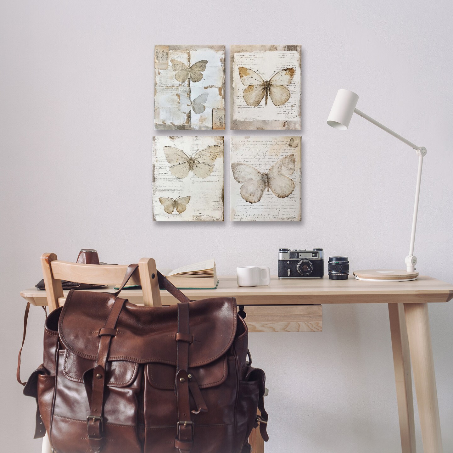 Stupell Industries Neutral Vintage Butterflies 4pc Canvas Wall Art Set Design by RileyB