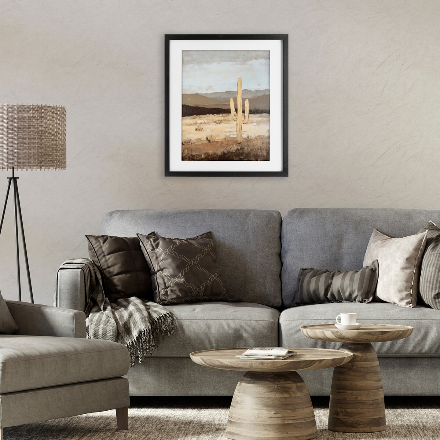 Stupell Industries Neutral Western Scene with Cactus Framed Print Under Glass, design by Franklyn Gregory