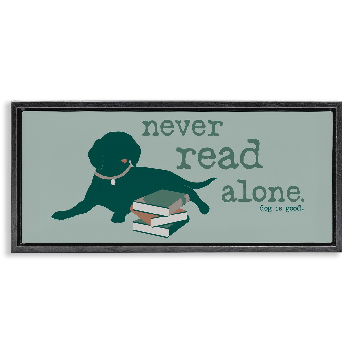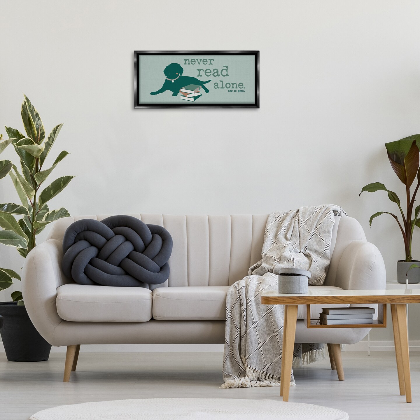 Stupell Industries Never Read Alone Dog Framed Floater Canvas Wall Art Design by Dog Is Good