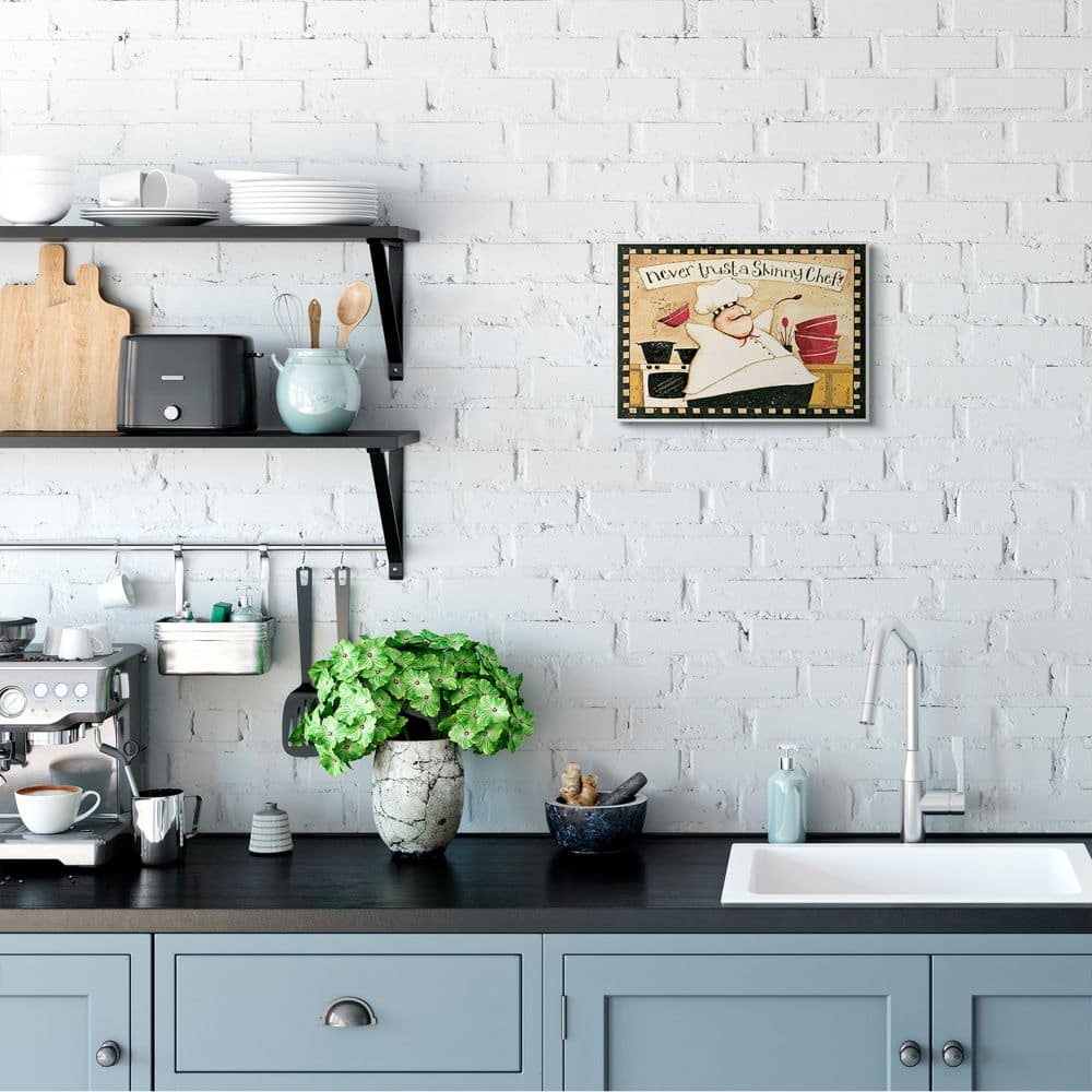 Stupell Industries Never Trust a Skinny Chef with Happy Cook Phrase Wood Wall Plaque