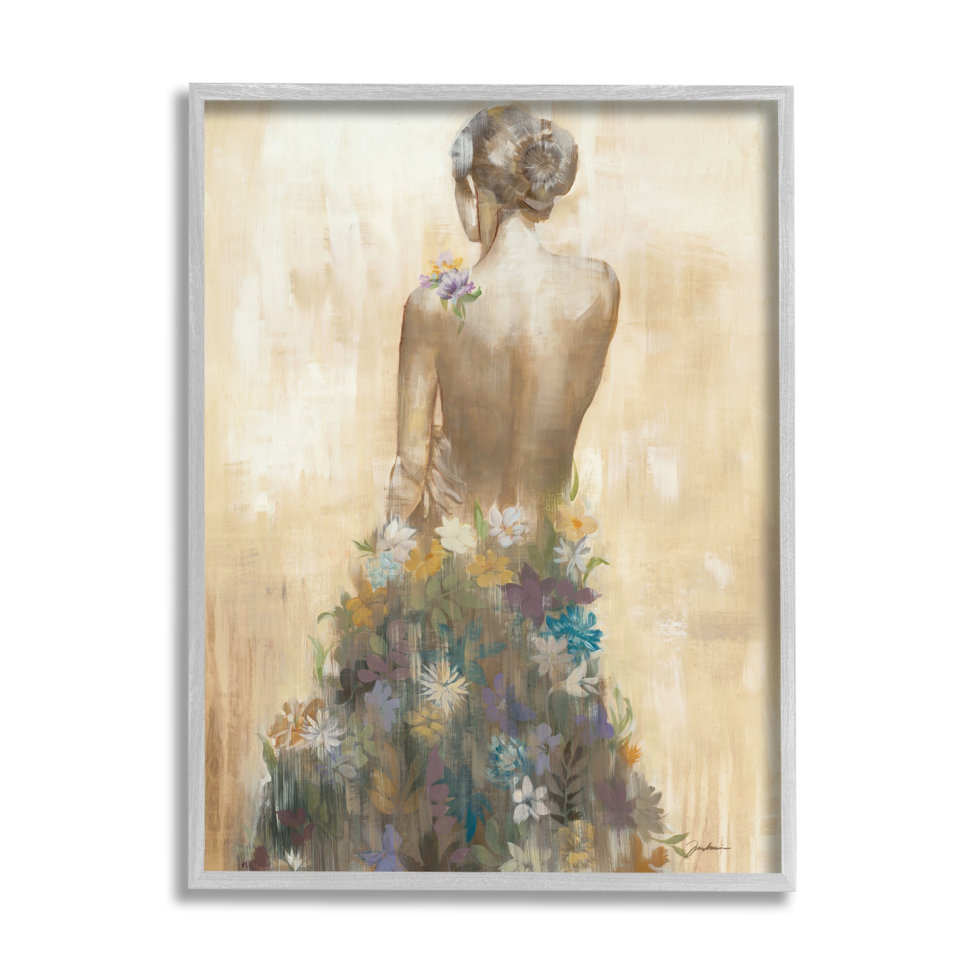 Stupell Industries Nude Female Body Soft Tone Flower Dress in Gray Frame Wall Art