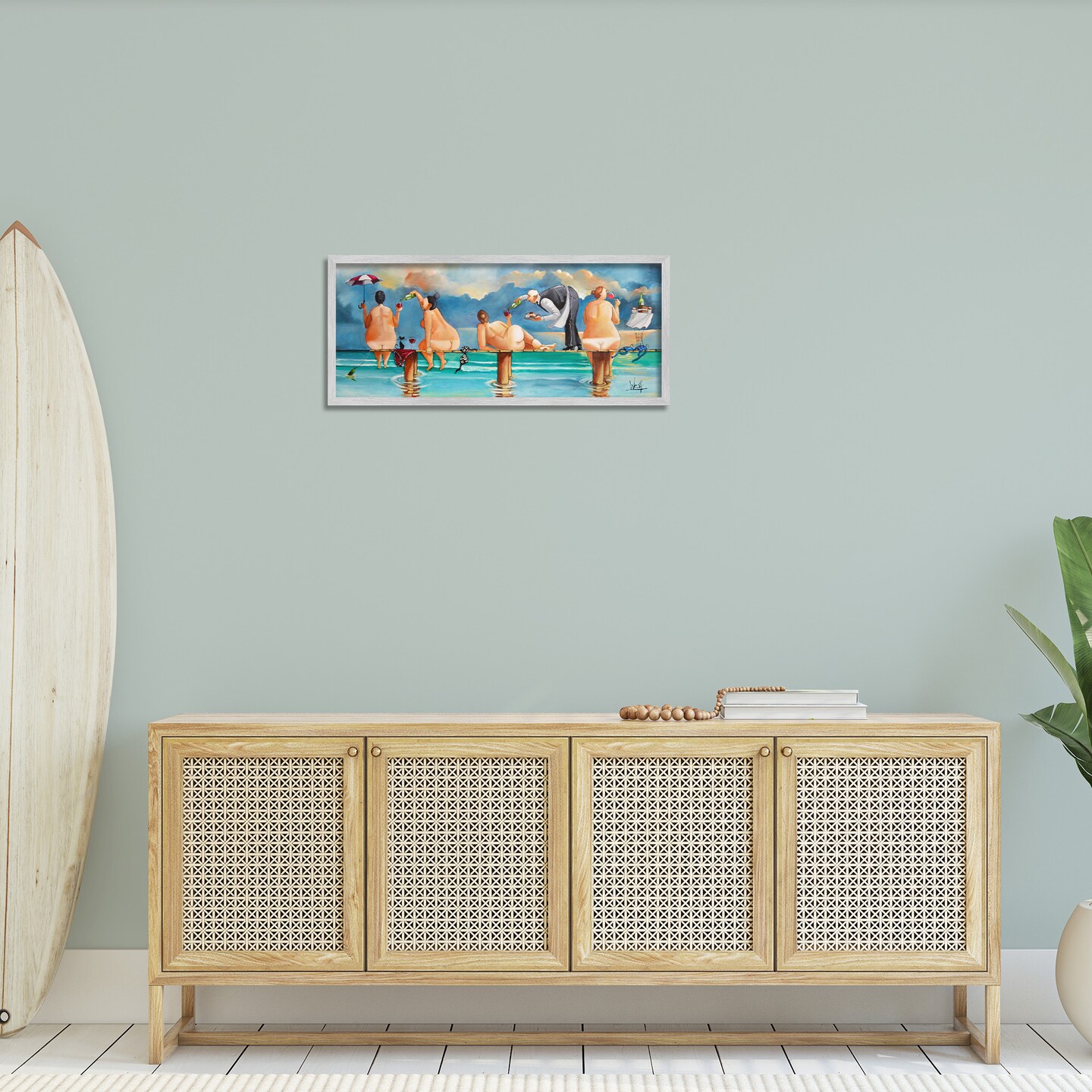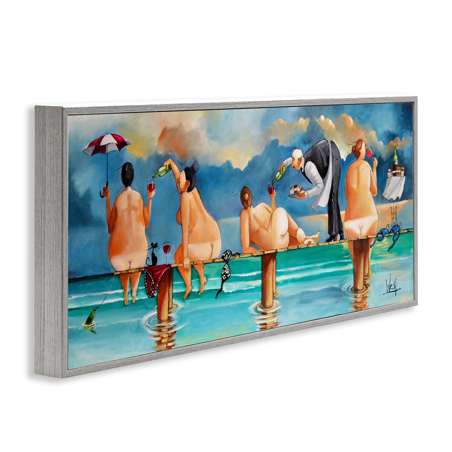 Stupell Industries Nude Ladies Summer Beach Wine Framed Giclee Art