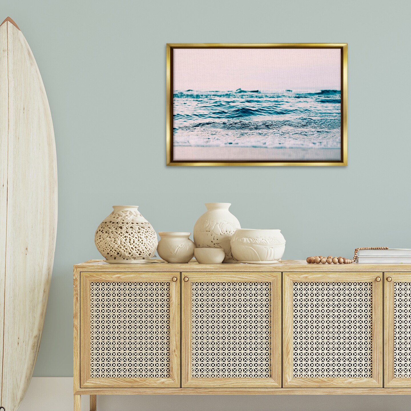 Stupell Industries Ocean Wave Blush Framed Floater Canvas Wall Art Design by Sisi and Seb