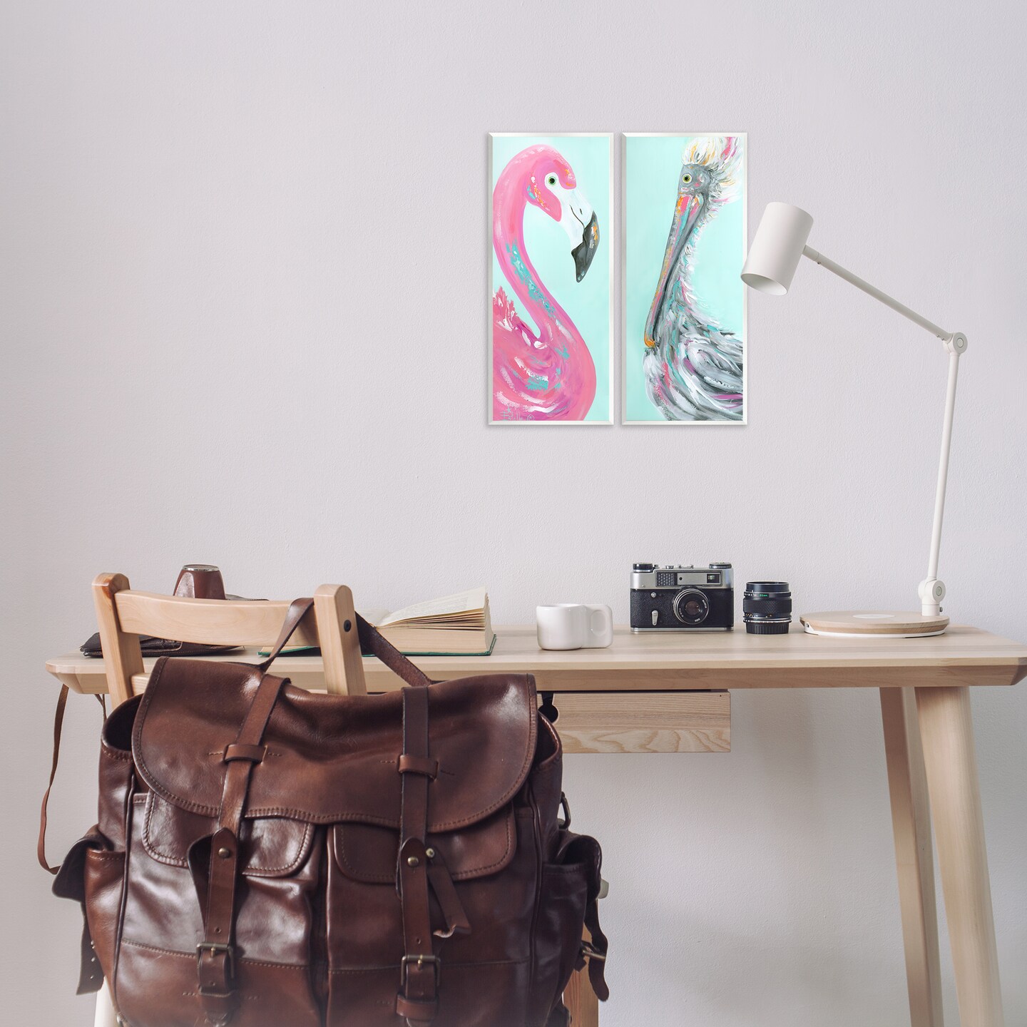 Stupell Industries Odd Flamingo Pelican Profile 2 pc Wall Plaque Art Set Design by Estelle Grengs